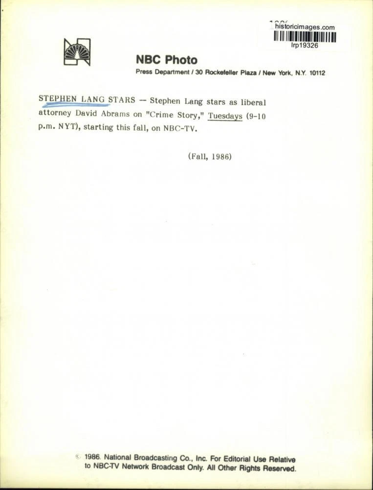 ebay template Note: Please study the images carefully to determine the condition of this vintage photograph, as it may not be in perfect condition. It may contain wrinkles, cracks, and possibly even tears due to its age and how it was handled before it got to us. A scanner may interpret colors and contrast differently than human eyes will, so it is possible that the actual photograph may be slightly darker or lighter in person. This vintage photograph is offered for sale as a collectible item and conveys no transfer of copyright. 1986 Press Photo Stephen Lang stars in television show "Crime Story" - lrp19326 This is an original press photo. Stephen Lang stars as liberal attorney David Abrams on "Crime Story," Tuesdays (9-10 PM NYT) starting this Fall on NBC TV. Photo measures 7 x 9.25 inches. Photo is dated --1986. PHOTO FRONT PHOTO BACK Historic Images Part Number: lrp19326 FAQs Q: Can I just download a digital version instead? A: No, we sell only vintage originals and do not make or distribute any copies, including digital ones. Q: Do you combine shipping and invoices? A: Multiple photos won on the same seller ID combine automatically through the eBay checkout process. If you encounter problems with this, send us a message via eBay messaging and we will send you an invoice. Due to eBay limitations, we cannot combine items won on our different seller IDs for a single shipping charge. Q: How quickly do you ship the items once paid? A: We ship within one business day after your payment clears. If you do not receive an "order shipped" email from us by the close of the second business day from submitting payment, please e-mail us via eBay messaging. Q: How do you make sure my photograph arrives safely? A: We package each order between two cross-corrugated pieces of cardboard to ensure that the package is as difficult to bend as possible. We then wrap each order in a plastic sheet to help protect against moisture. We want you to rest assured that we take every precaution to ensure that the photograph you receive will be in the same condition in your care as it was in ours. Q: Will the "Historic Images" watermark be on my photo when I receive it? A: No. This is a digital watermark we use to protect our images. It is not printed on the photo. Q: What are your office hours? A: eBay for us is a business, and a very fun one to be in! We are open M-F 9 to 5 (CST). Therefore, we do not return e-mails and phone calls over the weekend. We observe the following holidays: New Years Day, Memorial Day, Fourth of July, Labor Day, Thanksgiving and the day after Thanksgiving, Christmas Eve and Christmas Day. Q: Where did all these vintage photos come from? A: These original vintage photographs are from various news service and newspaper photo archives from locations around the country including: Boston, Detroit, Tampa, Chicago, Denver, Seattle, New Orleans, Milwaukee, Portland, Spokane, and more. We do not copy or reproduce any photographs -- every item is a unique vintage piece that was housed in a news archive. Q: Can I use this photograph in my book/blog/website? A: The short answer is no. There is no transfer of copyright for republication or reproduction with these photographs when you purchase them, and only photographs taken before 1923 are currently automatically in the public domain. Permission from the copyright holder, which usually can be identified from the back of each photo, must be sought to republish or reproduce the image for any purpose. Q: Do you relist items (in case I miss an auction ending)? A: Auction items that receive no bids are relisted in our store (historicimages-store on eBay) as a fixed-price item and at a higher price than the starting auction price. Q: Do you leave feedback? A: Yes, we always leave feedback for buyers. Our software monitors when our buyers leave us feedback, then notifies us that we can leave feedback for the buyer. Rest assured, if you leave feedback, we will do the same! Check out our family of eBay IDs: historicimages01 Sports Photos historicimages02 Entertainment Photos historicimages03 Americana Photos historicimages04 International & War Photos historicimages05 Transportation Photos historicimages06 Photos of All Subjects historicimages07 Entertainment Photos historicimages08 Newsworthy Photos historicimages09 Entertainment Photos historicimages10 Sports Photos historicimages-store Our largest fixed-price selection historicimages-gallery Hand-picked photos Saturday night auctions About Us Historic Images was formed in September 2009, with a handful of scanners working out of a basement to digitize newspaper photo archives. We have since moved out of the basement, and we can now archive thousands of photos per day. Our company has worked with magazines and newspapers from Detroit, Boston, Denver, Seattle, Tampa, Chicago, and New Orleans, just to name a few. We are constantly adding to our inventory, and have assembled an archive of millions of photos to date. As our company evolved, we began our eBay business, which brings thousands of fresh auctions per week to the world's largest online auction marketplace. Our custom software systems and team of great employees allow us to efficiently scan and sell large photo archives online. At the very core of our company's DNA is a strong commitment to customer satisfaction and strict integrity for our product. Our promise to you is that we will do everything in our power to provide you a great buying experience. Copyright 2009 - Present, Historic Images, Inc. Sell Smarter with Kyozou. Inventory and Ecommerce Management