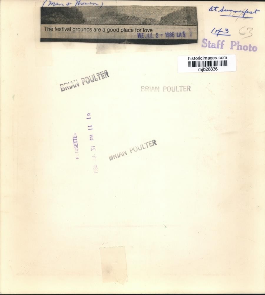 ebay template Note: Please study the images carefully to determine the condition of this vintage photograph, as it may not be in perfect condition. It may contain wrinkles, cracks, and possibly even tears due to its age and how it was handled before it got to us. A scanner may interpret colors and contrast differently than human eyes will, so it is possible that the actual photograph may be slightly darker or lighter in person. This vintage photograph is offered for sale as a collectible item and conveys no transfer of copyright. 1986 Press Photo Two couples at the Summerfest Festival Grounds - mjb26836 This is an original press photo. The festival grounds are a good place for love. At Summerfest. Men and Women Photo measures 8 x 8.75 inches. Photo is dated 7-2-1986. PHOTO FRONT PHOTO BACK Historic Images Part Number: mjb26836 Sell Smarter with Kyozou. Inventory and Ecommerce Management