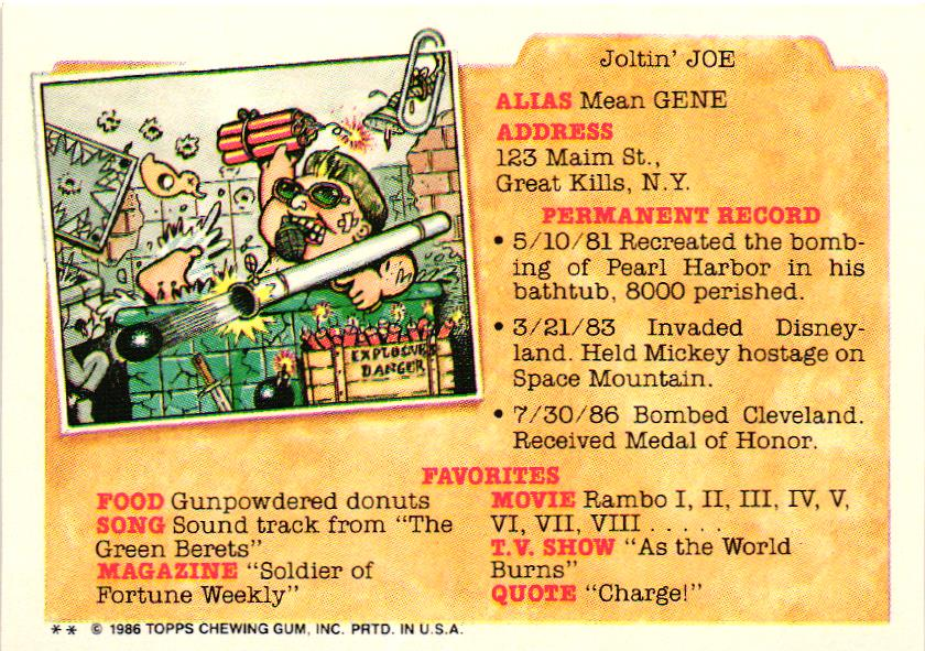 $ 1.351986 Topps Garbage Pail Kids Sticker Card 186B Jean Machine Collectible Vintage