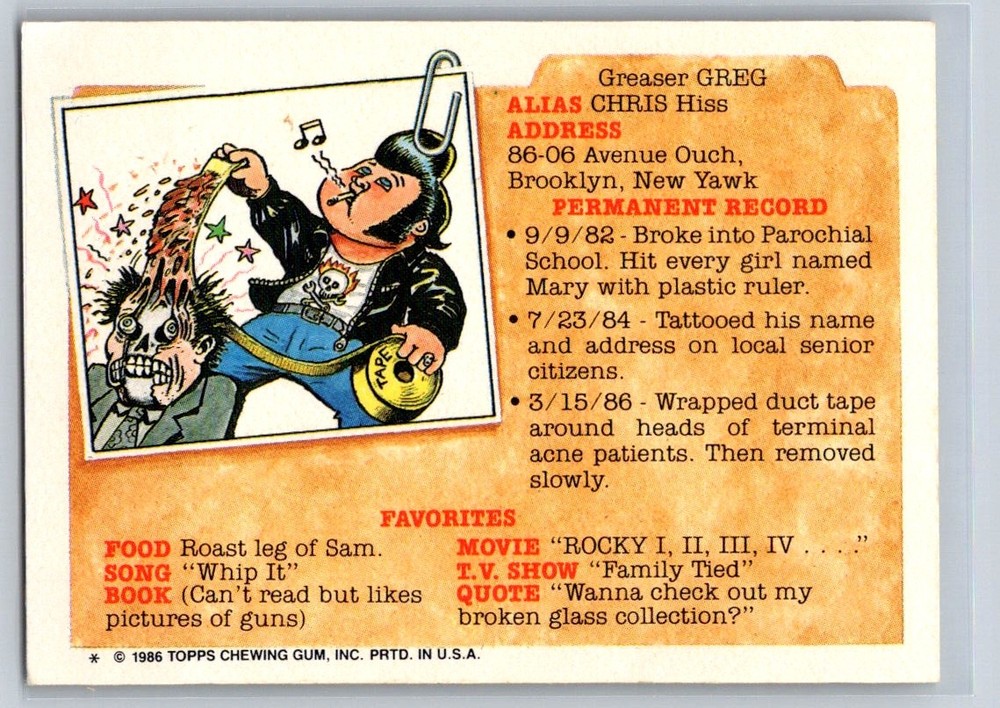 1986 Topps Garbage Pail Kids Series 5 Fran Furter #185a [ BUY NOW or BEST OFFER] Payment We are following eBay’s updated Payment/Unpaid items rules. Payment for purchased items must be completed within 3 days. Shipping 1. We Will COMBINE SHIPPING! Please ask for an invoice prior to paying! 1. Packages are typically shipped within 24 hours of payment receipt (We attempt to make it a practice to ship Mondays & Thursdays for sure). 2. Please note, that once shipped, we have no control over the actual shipping time. You will receive an email stating when your item was shipped, and you will be given a tracking number, if requested. Terms of Sale 1. If for any reason you would like to return an item, please reach out to our store first. If you must, then go into your original sale on eBay and request a refund prior to returning the item. We follow eBay’s Money back guarantee. 2. When an item is returned, the item must arrive back to us in the same condition that it was sent to you. 3. Buyer is responsible for paying to ship the item back. IMPORTANT: Any item(s) that has a COA (Certification Of Authenticity) will say it has a COA in the title or description. If it does not say it has a COA, then the item does not come with a COA. About Junk Since 1993 A branch off “Papa Chubby Sports & Collectables” store on eBay. Junksince1993 started in January 2025. Our focus will be on customer service: excellent packaging and fast shipping. Our goal is 100% positive feedback - and we will do our best to provide items accurately described. If you have any issues or concerns we will get back to you as soon as possible. You may buy with confidence knowing that we are a reputable seller with over 20 years of experience and that we make our living selling on eBay and in our retail store. We do our best to describe everything to the best of our knowledge, we are not experts in all of the selling categories, so we will also rely on your research and personal knowledge for giving us factual information on the items that we sell to our eBay customers.