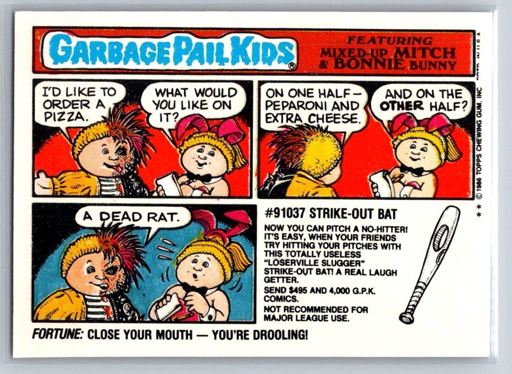1986 Topps Garbage Pail Kids Series 6 Shish K. Bob #245b [ BUY NOW or BEST OFFER] Payment We are following eBay’s updated Payment/Unpaid items rules. Payment for purchased items must be completed within 3 days. Shipping 1. We Will COMBINE SHIPPING! Please ask for an invoice prior to paying! 1. Packages are typically shipped within 24 hours of payment receipt (We attempt to make it a practice to ship Mondays & Thursdays for sure). 2. Please note, that once shipped, we have no control over the actual shipping time. You will receive an email stating when your item was shipped, and you will be given a tracking number, if requested. Terms of Sale 1. If for any reason you would like to return an item, please reach out to our store first. If you must, then go into your original sale on eBay and request a refund prior to returning the item. We follow eBay’s Money back guarantee. 2. When an item is returned, the item must arrive back to us in the same condition that it was sent to you. 3. Buyer is responsible for paying to ship the item back. IMPORTANT: Any item(s) that has a COA (Certification Of Authenticity) will say it has a COA in the title or description. If it does not say it has a COA, then the item does not come with a COA. About Junk Since 1993 A branch off “Papa Chubby Sports & Collectables” store on eBay. Junksince1993 started in January 2025. Our focus will be on customer service: excellent packaging and fast shipping. Our goal is 100% positive feedback - and we will do our best to provide items accurately described. If you have any issues or concerns we will get back to you as soon as possible. You may buy with confidence knowing that we are a reputable seller with over 20 years of experience and that we make our living selling on eBay and in our retail store. We do our best to describe everything to the best of our knowledge, we are not experts in all of the selling categories, so we will also rely on your research and personal knowledge for giving us factual information on the items that we sell to our eBay customers.