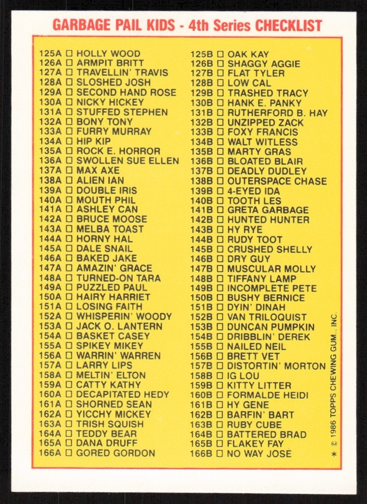 1986 Garbage Pail Kids Topps Sticker Cards