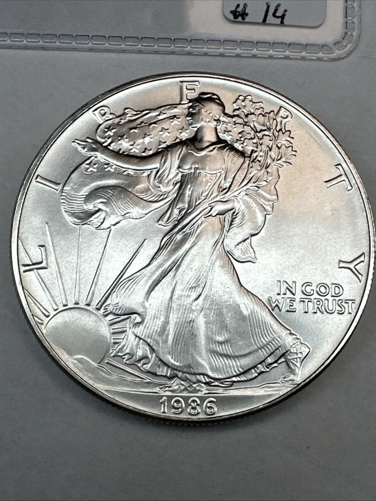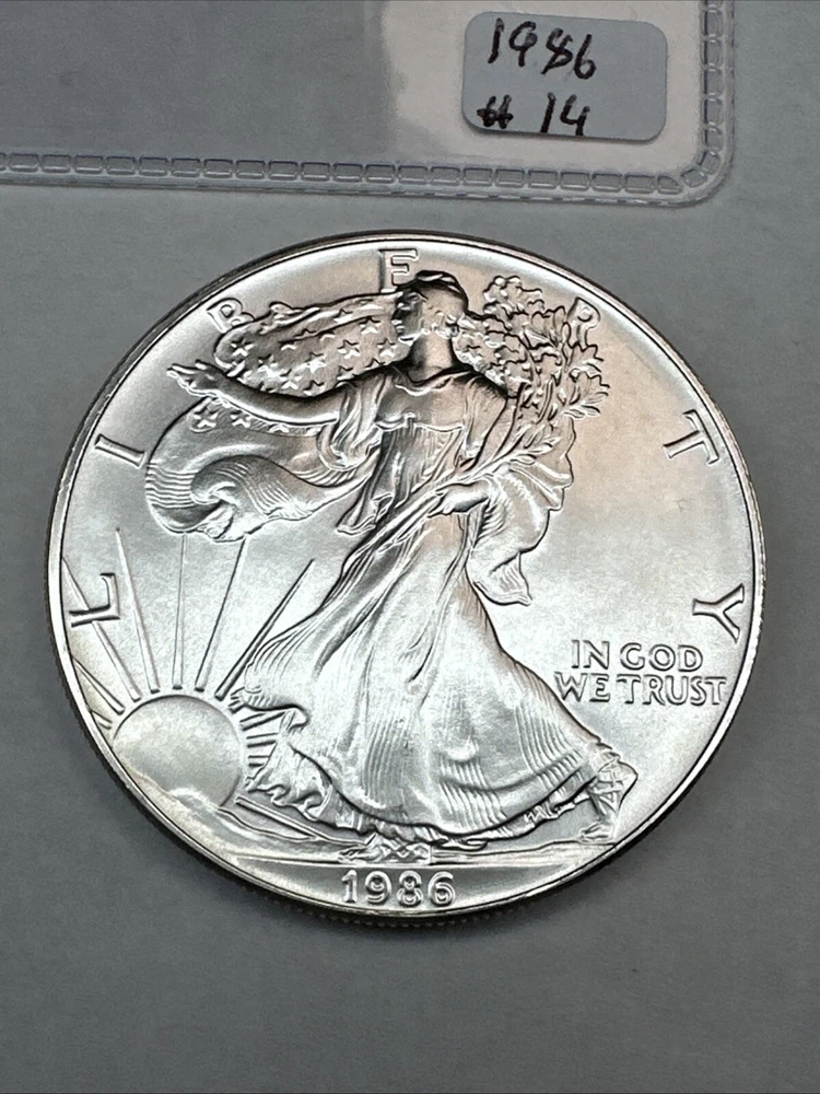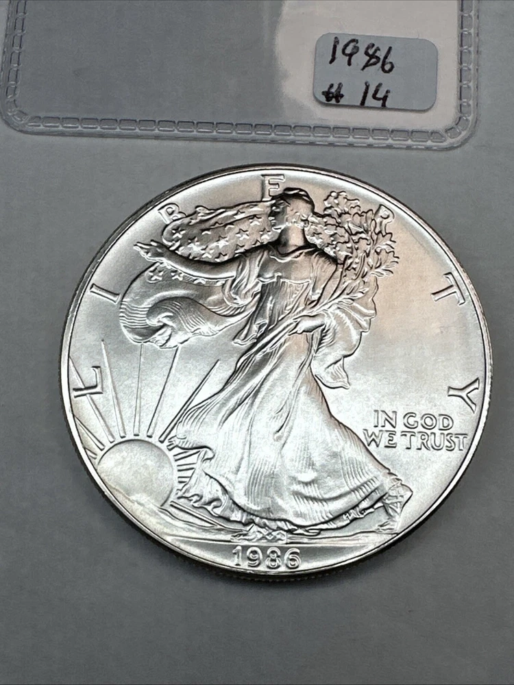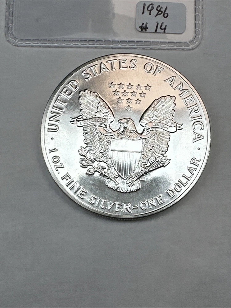 1986 Uncirculated Silver American Eagle 1oz 0.999 Fine Silver 14