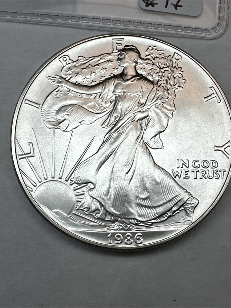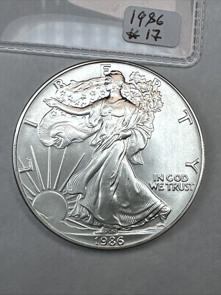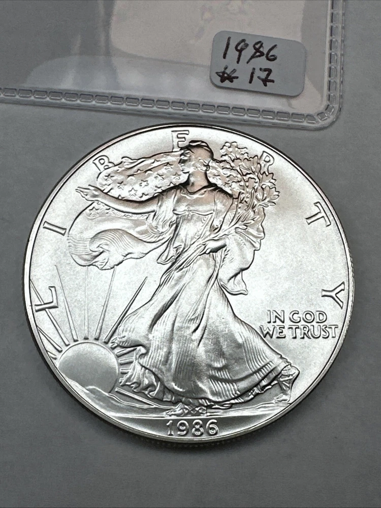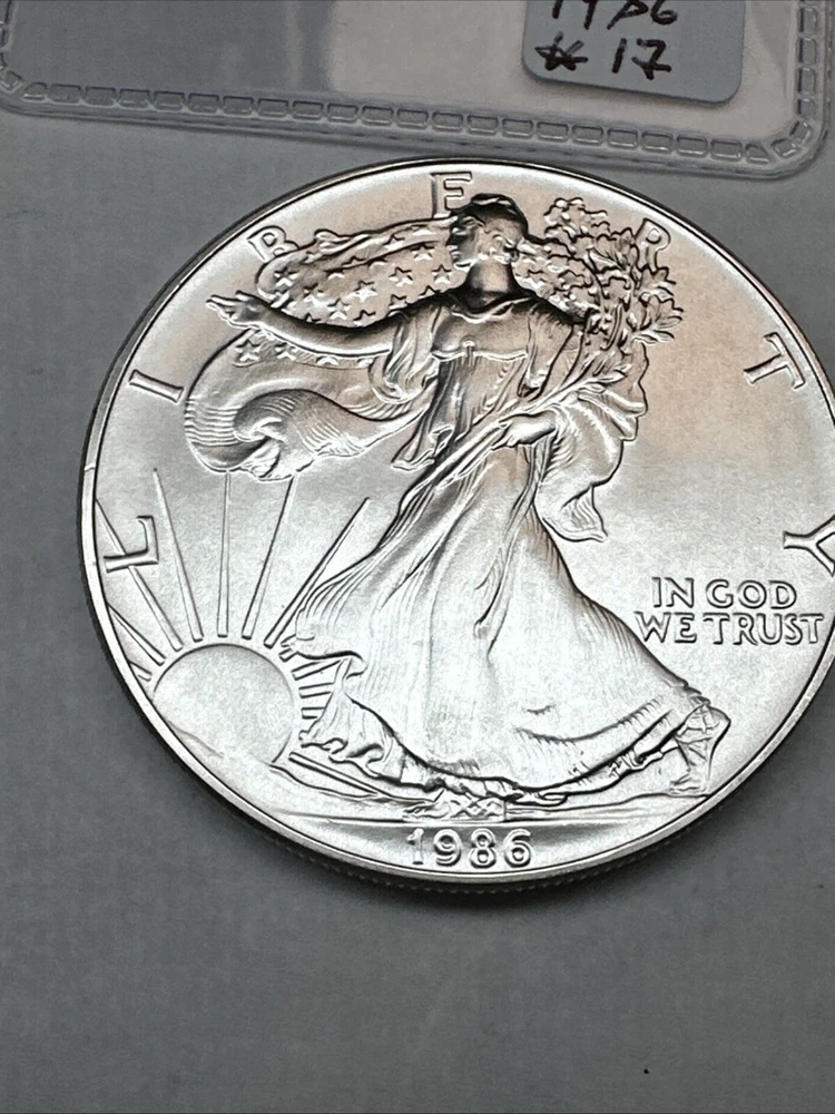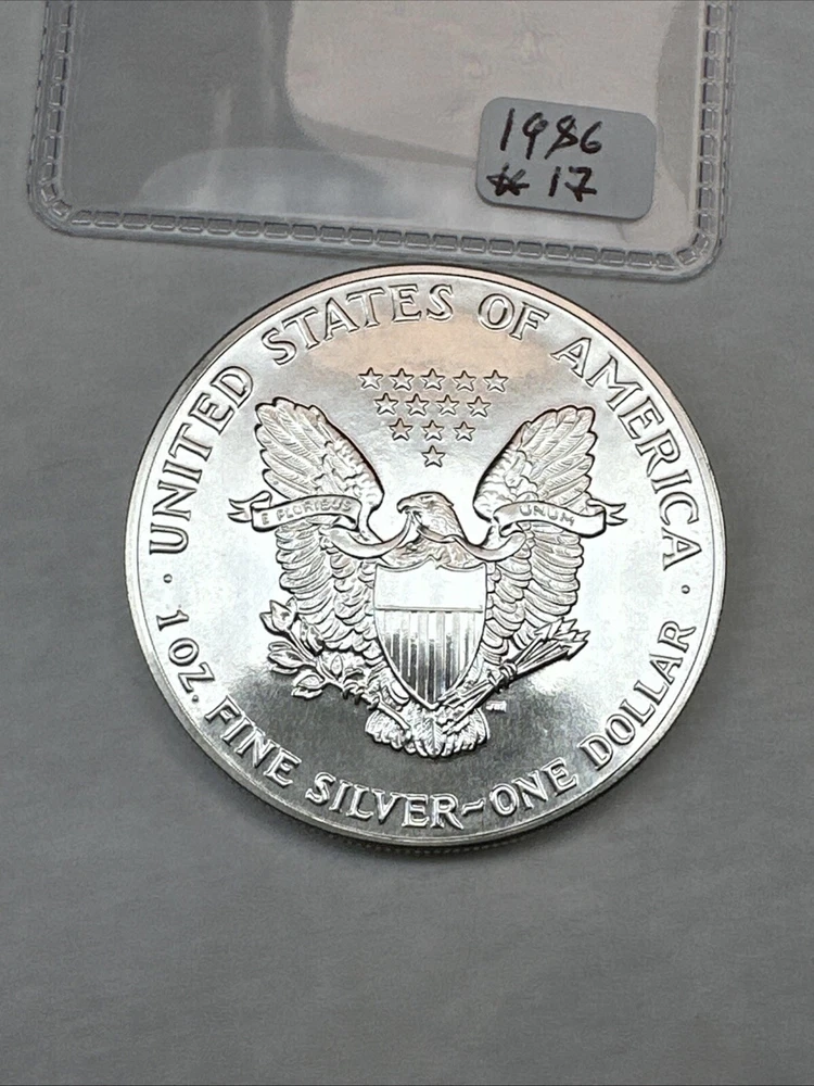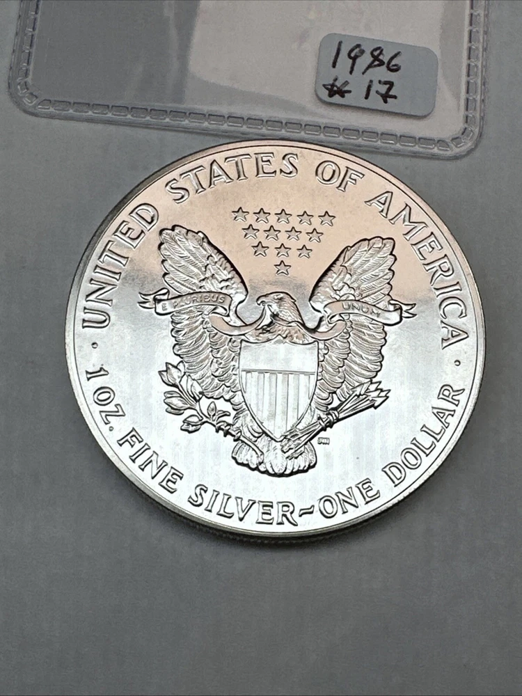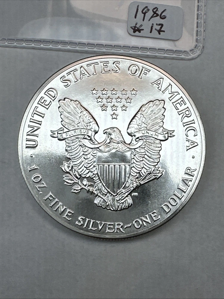 This product is a 1986 Uncirculated Silver American Eagle coin, minted by the U.S. Mint. It contains 1 oz of 0.999 fine silver. The coin features a business strike type and is ungraded and uncertified. It is a valuable piece for collectors and investors alike.