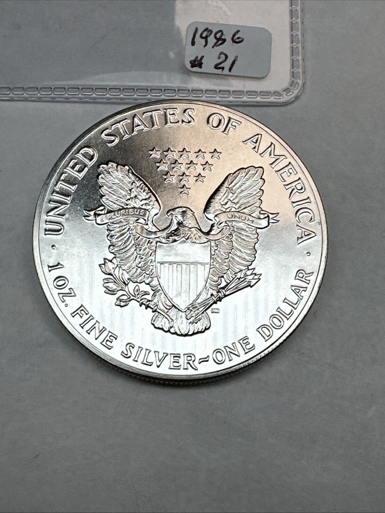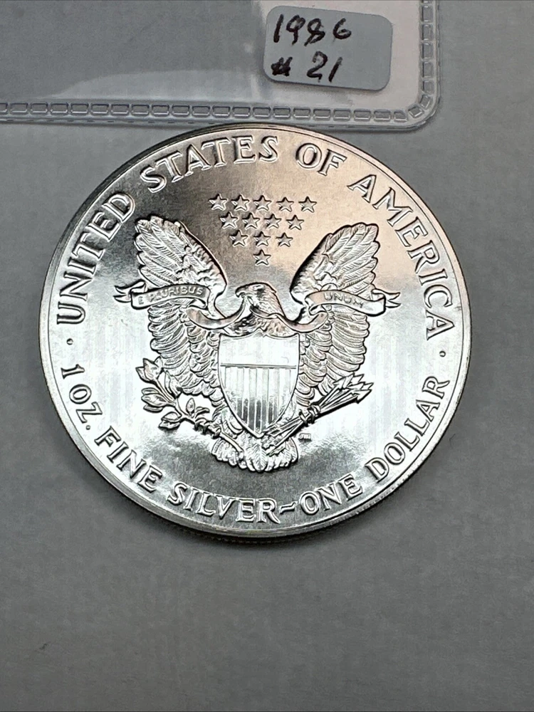 1986 Uncirculated Silver American Eagle 1oz 0.999 Fine Silver 21