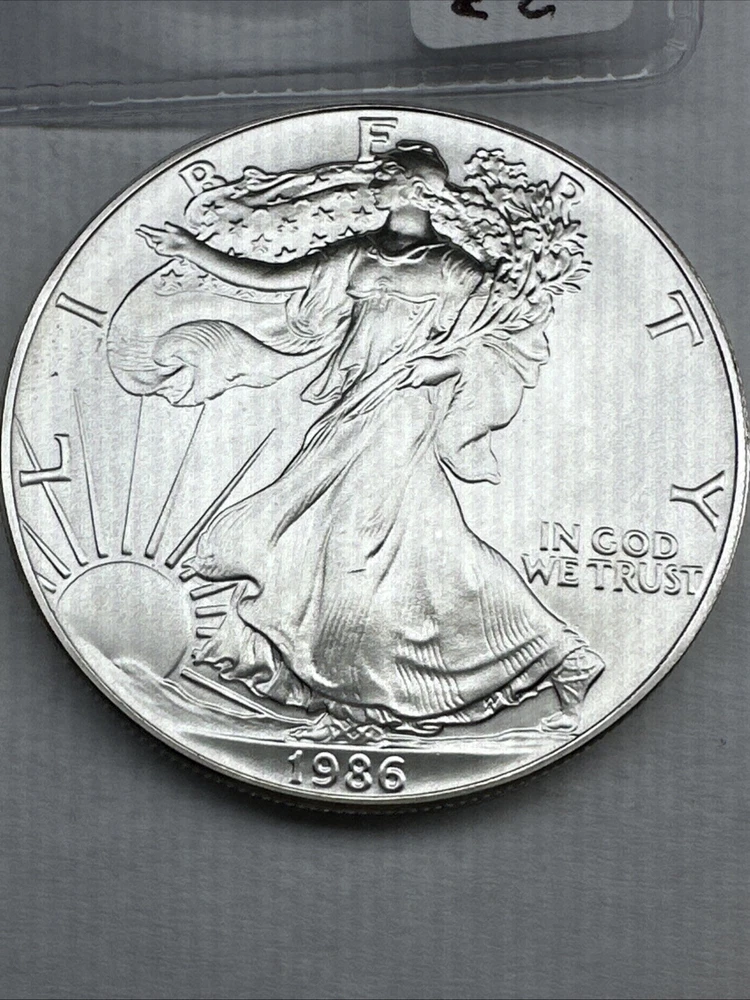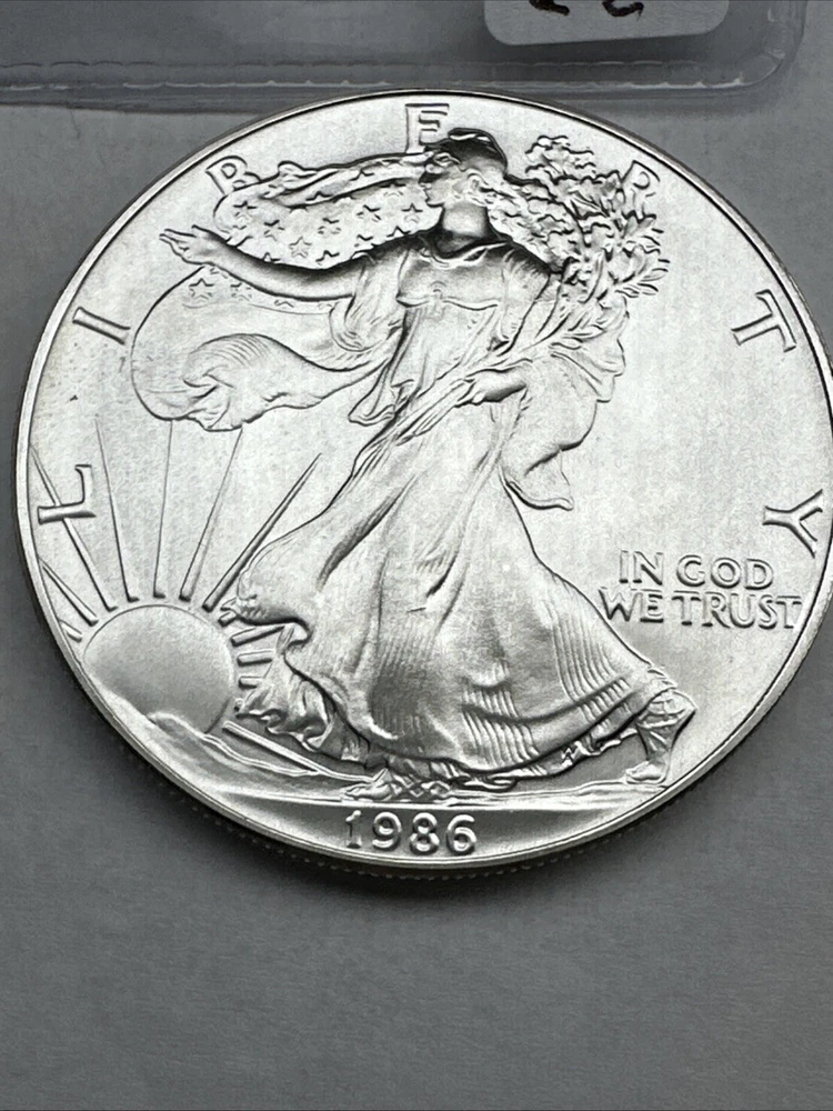 The product is a 1986 Uncirculated Silver American Eagle coin minted by the U.S. Mint. It contains 1 oz of 0.999 fine silver, making it a valuable bullion investment. This coin features the iconic American Eagle design and is a highly sought-after collectible item for coin enthusiasts and investors alike.