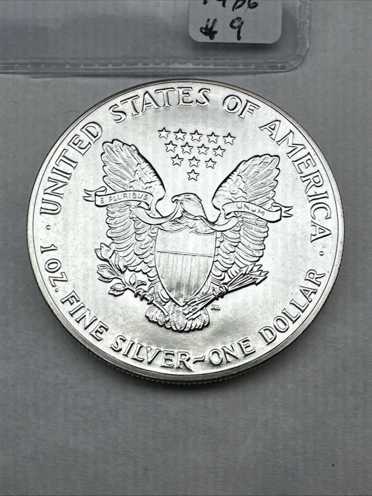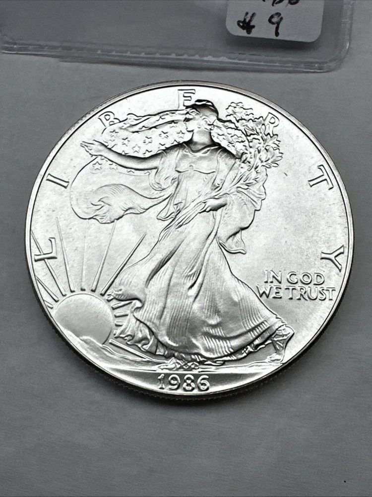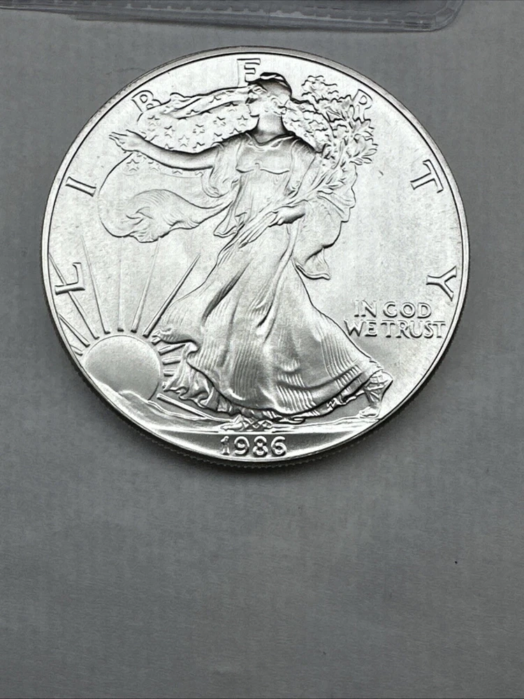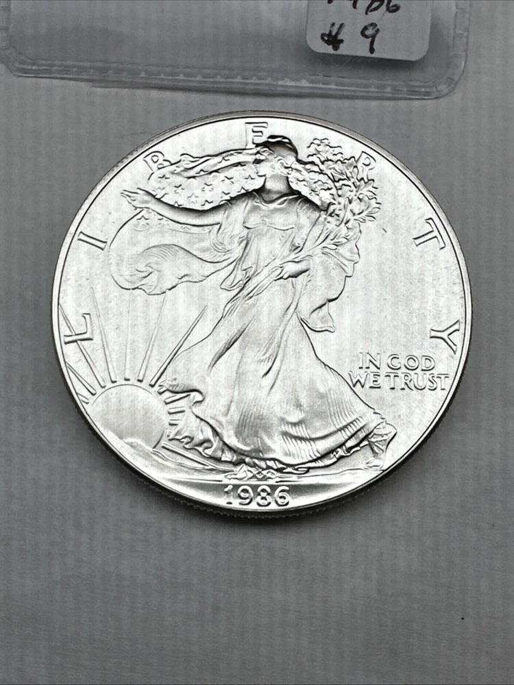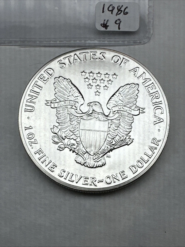 The product is a 1986 Uncirculated Silver American Eagle coin minted by the U.S. Mint. It contains 1 oz of 0.999 fine silver, making it a valuable bullion investment. This coin features the iconic American Eagle design and is a highly sought-after collectible item for coin enthusiasts and investors alike.