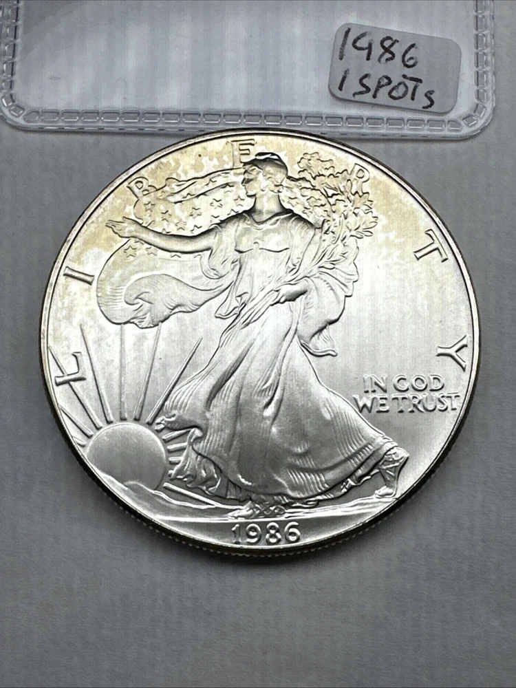 1986 Uncirculated Silver American Eagle 1oz 0.999 Fine Silver Some Spots