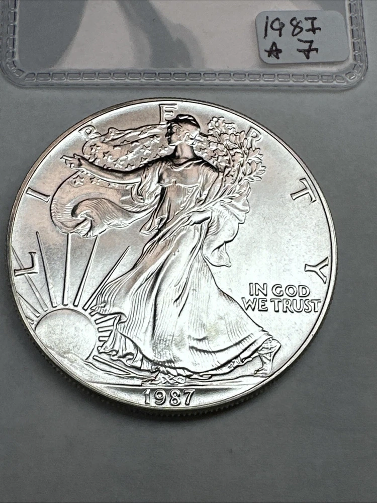 This 1987 American Silver Eagle is a highly sought-after coin for collectors and investors alike. It features a beautiful design and is made of pure silver with a fineness of 0.999. The coin is ungraded and uncertified, making it a great addition to any collection or investment portfolio. The Silver Eagle is a product of the U.S. Mint and is the second year of its production. This one-ounce coin has a precious metal content of 1oz and bears the image of Lady Liberty on one side and the American eagle on the other. Don't miss your chance to own a piece of American history with this classic coin.