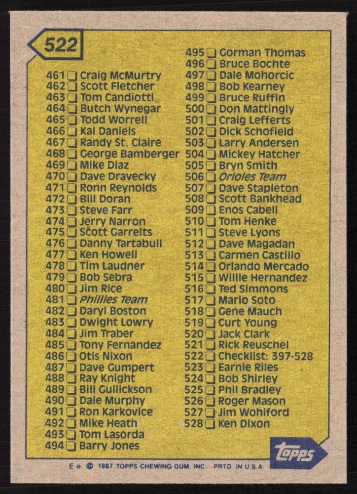 About Me Other Listings Feedback Add to Favorites Contact Me eBay Store DJ Chino Sports 1987 Topps Checklist 397-528 MLB #522 No stock photo / These are real scans or pictures Details Description: Checklist 397-528 Category: Baseball Year: 1987 Product: Topps Team: MLB Card Number: 522 Dimensions: 3½" x 2½" SKU: BL A0001 R01 O (793) Payment Payment due upon purchase. Shipping Shipping - Please see shipping for pricing and details. - Every card (excluding graded cards) will be shipped in a penny sleeve and Card Saver. Some cases in a top loader. - Any damage to your card during shipping, or not received. I will contact eBay to issue a refund. - I honor combined shipping and discounted shipping for additional items. For standard cards, $.10 each for additional cards. For more information, please check shipping details. - For Graded Cards, I will be shipping in a standard box and well protected. Rookie No returns or cancellations accepted. About Us Welcome to my store. I have been collecting cards for 30+ years and enjoy collecting. I am starting my store so that I can share my collection to the world. Please check out my other listings and feel free to reach out to me with any questions. Thank you. Cards Information - Cards are scanned and immediately after break. - Please refer to photos for additional details. - Cards are in NMINT or better shape may have lines, smudges, different color, or dust due to the scanner. If you would like more details on this card. Please message me and will be happy to send other photos. - Cards may have minor flaws such as slight corner/edge dings, production printing, surface dimples, ect. Please message me if you have questions. - All my cards are stored in a cool environment and in card boxes. - With listings that have multiple quantities. I do label condition, and may not be the card you you see in the picture. If you would like additional photos, please let me know and will eBay message you photos. Listing By Kronocard trading cards software v2.8.1.2