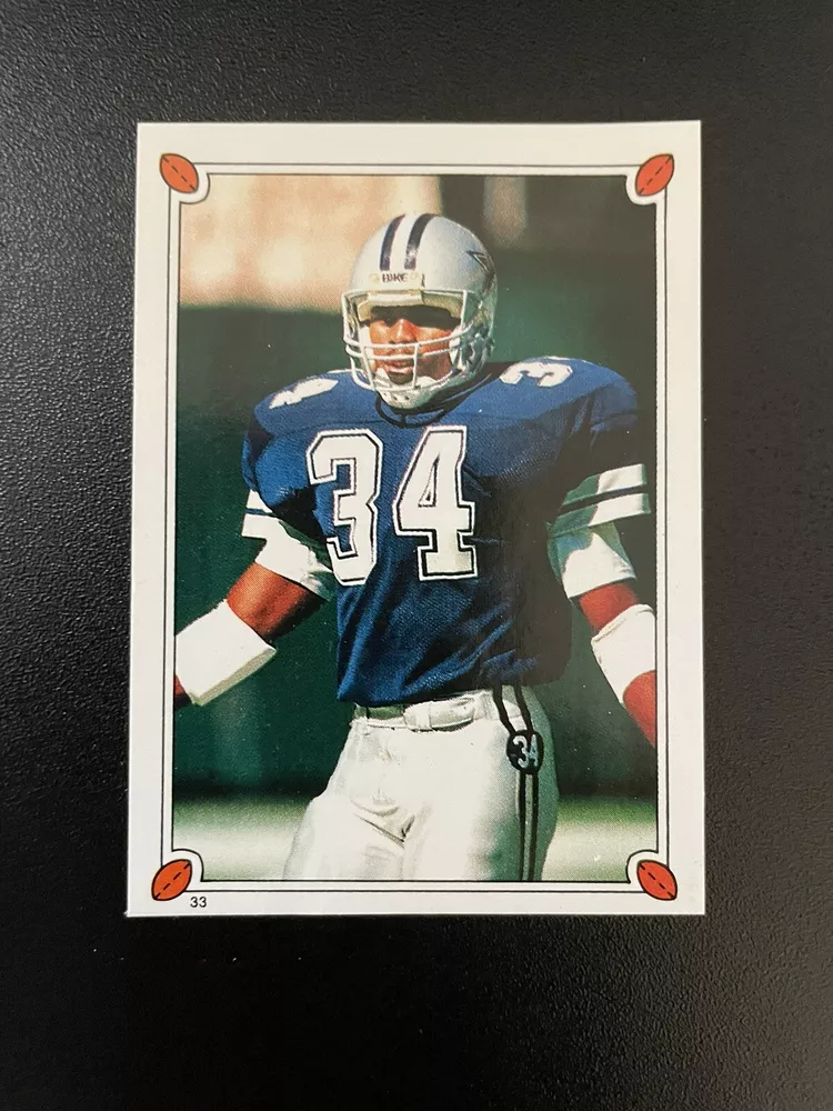 This 1987 Topps Stickers trading card features Herschel Walker, a former professional football player who played for the Minnesota Vikings and Dallas Cowboys in the National Football League (NFL). The card is part of the 1987 Topps set and is numbered 33. It is a must-have for any collector, especially those who are fans of football and enjoy collecting sports trading cards. The card is in excellent condition and showcases Herschel Walker as a rookie player. It is a great addition to any collection and would make a perfect gift for any football enthusiast. Don't miss out on the opportunity to own a piece of NFL history with this 1987 Topps Stickers Herschel Walker Rookie Rc trading card.