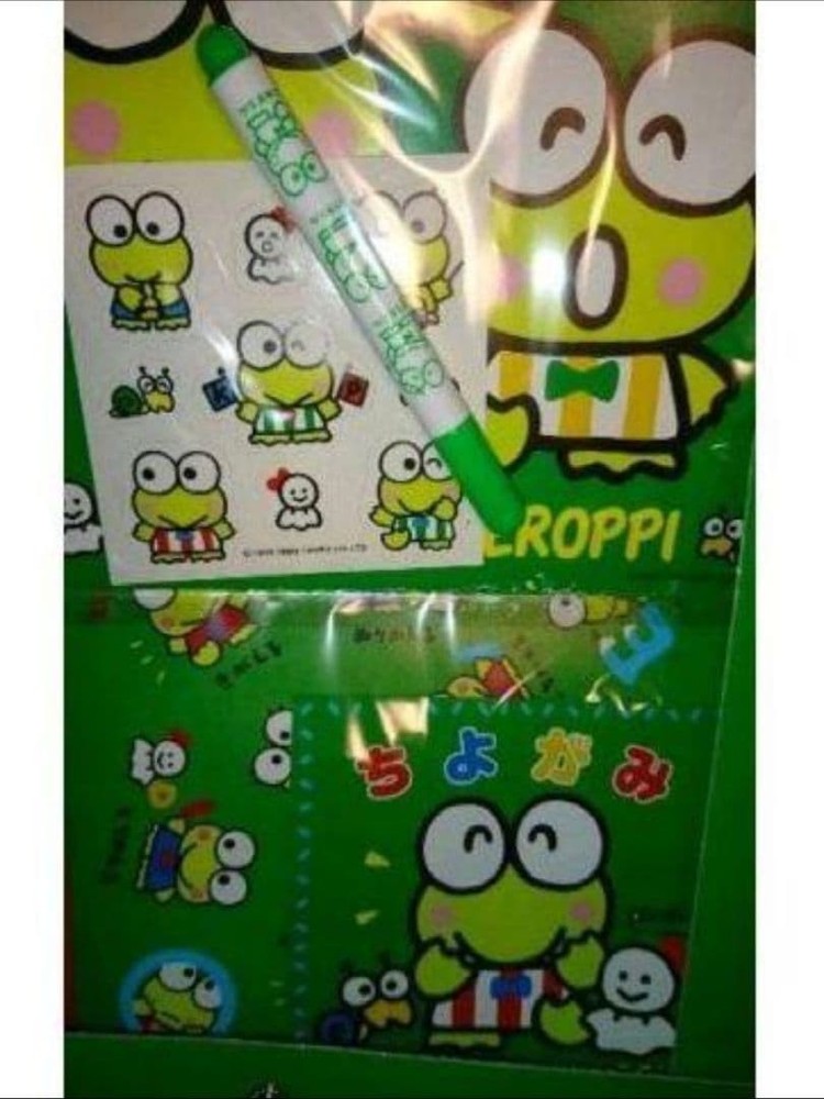 1988 1990 Kerokero Keroppi origami bag stationery set