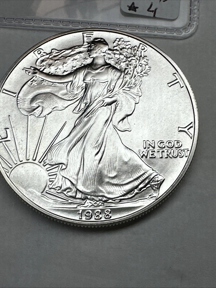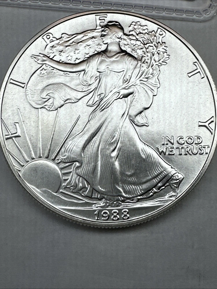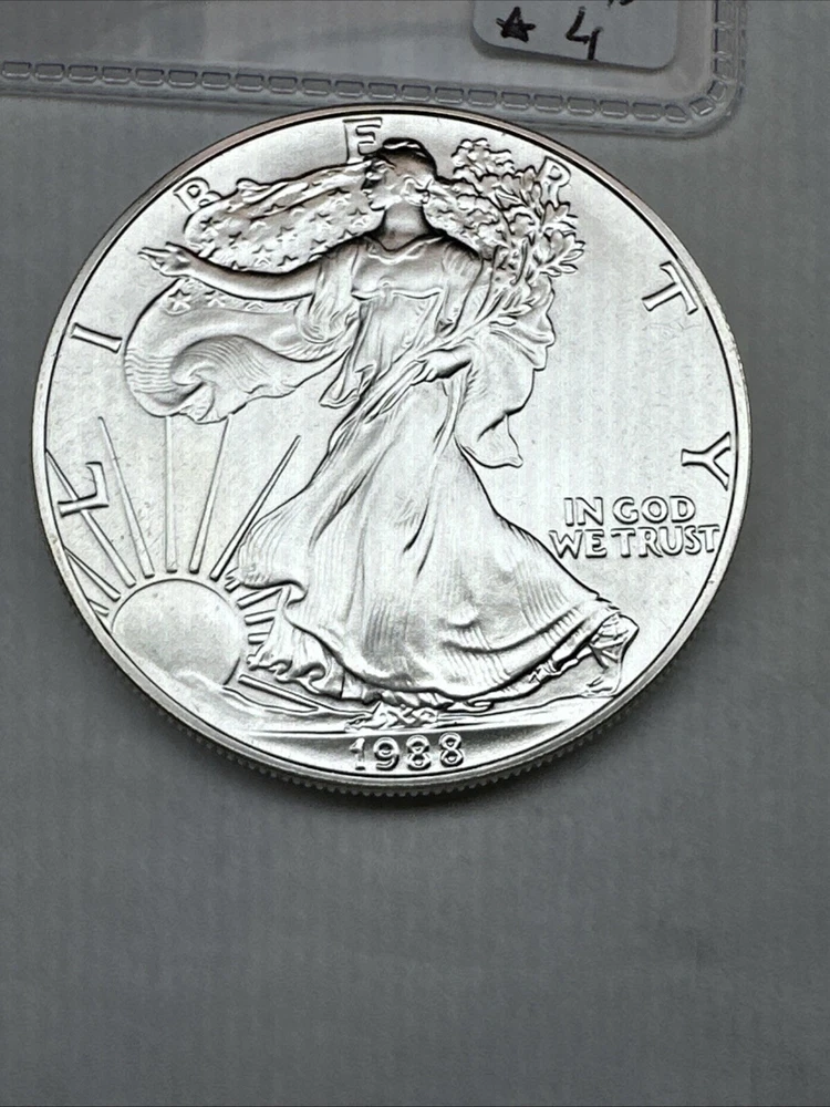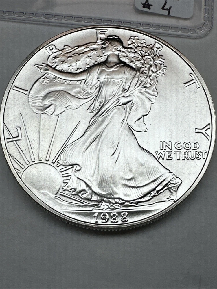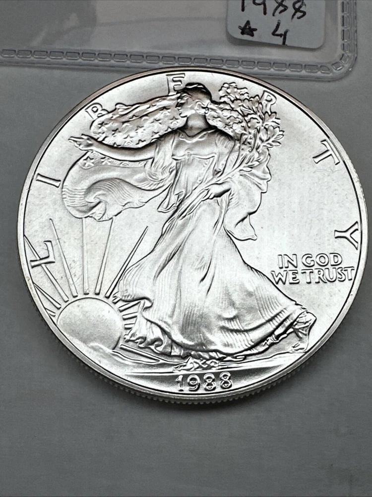 Certification: Uncertified Brand/Mint: U.S. Mint Total Precious Metal Content: 1oz Year: 1988 Coin: American Eagle Precious Metal Content per Unit: 1 oz Grade: Ungraded Brand: Silver Eagle Strike Type: Business Fineness: 0.999 Country/Region of Manufacture: United States Composition: Silver