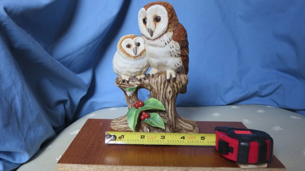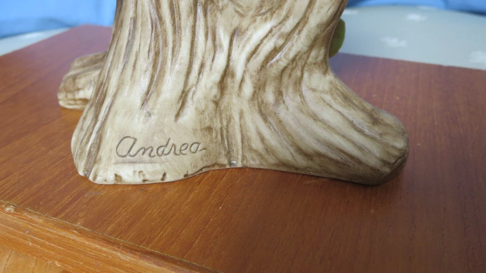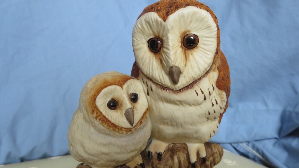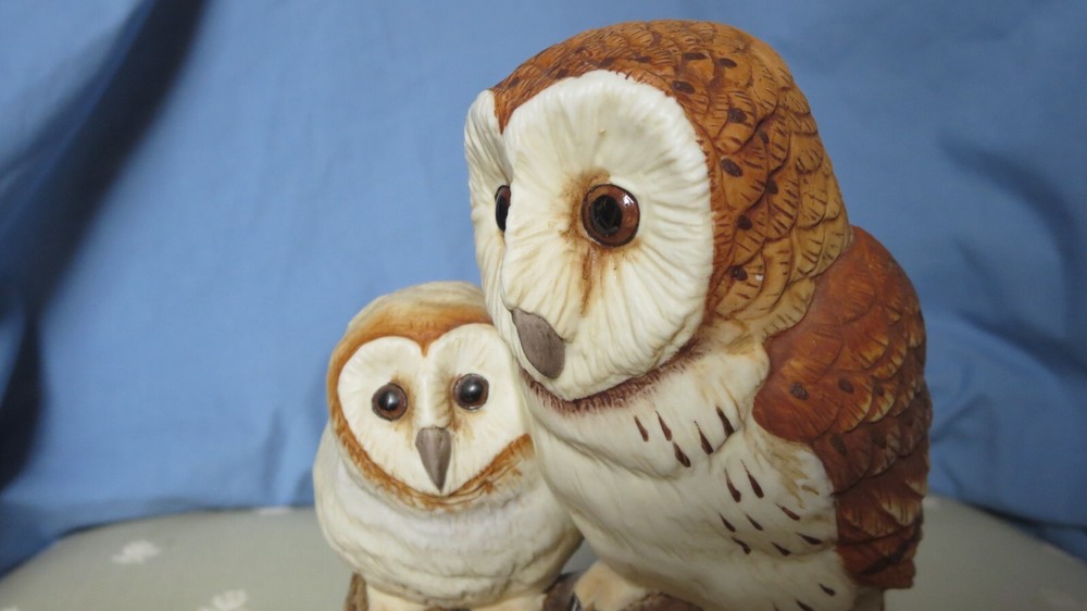 This Barn Owl Porcelain Bird Art Sculpture from 1988 by Andrea Sadek is a small, multicolored sculpture featuring an owl. Made of porcelain in Japan, it is part of a collection of owls and has a traditional style. The sculpture is matte finished and suitable for any room in the house, making it a versatile piece for wildlife enthusiasts or collectors of animal-themed decor.