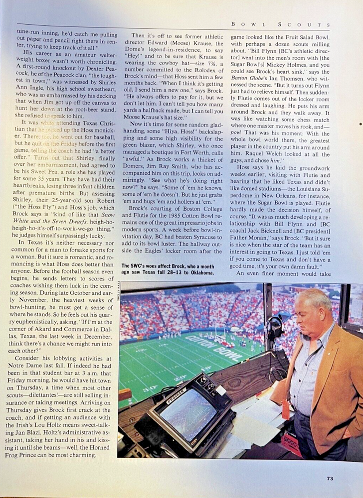 1988 Cotton Bowl Manager Jim Hoss Brock Vintage Collectible