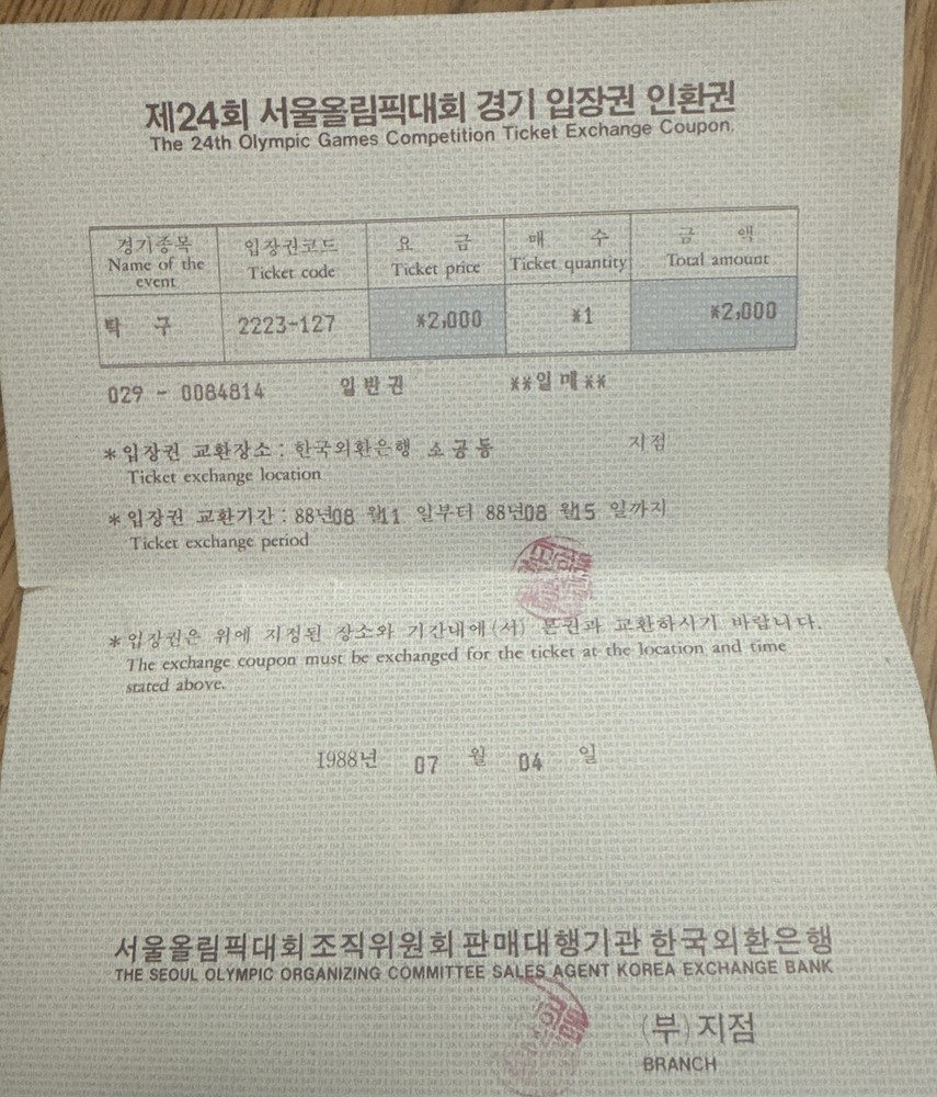 The 1988 Olympics Ticket Exchange Coupon is an original, ungraded vintage piece of sports memorabilia related to the Olympics. This item likely allowed spectators to exchange their tickets for different events during the 1988 Olympic Games. As a vintage piece, it offers a unique glimpse into the ticketing system and fan experience of the Olympics held that year in Seoul, South Korea. It is a valuable collectible for sports enthusiasts and collectors interested in Olympic history.