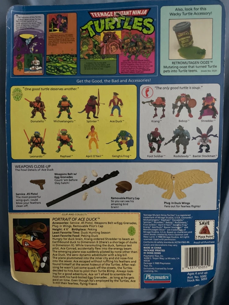 Original 1989 series 2 TMNT. Ace Duck. A fun character and a must have for collectors of TMNT. Unopened.