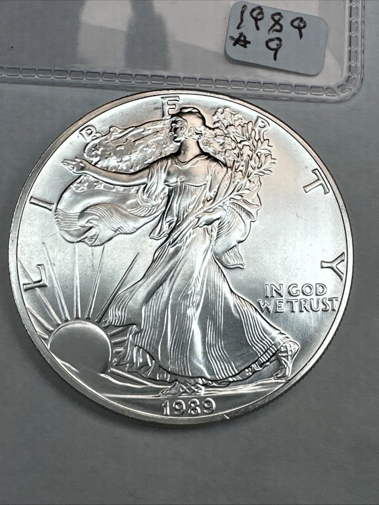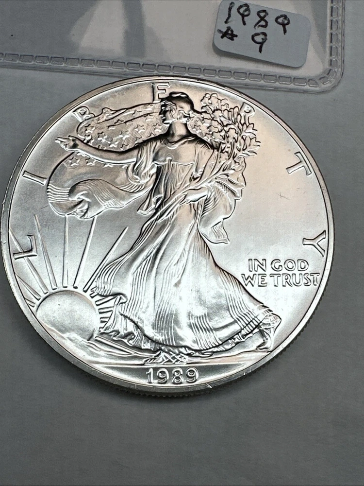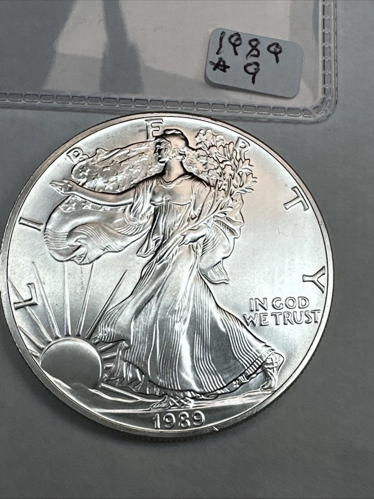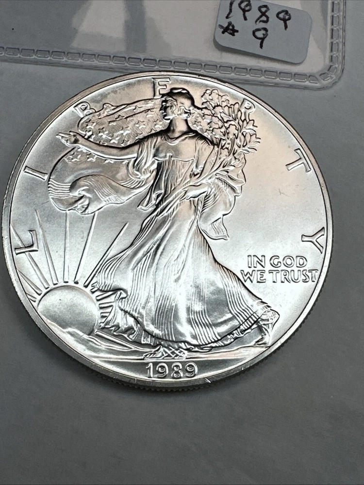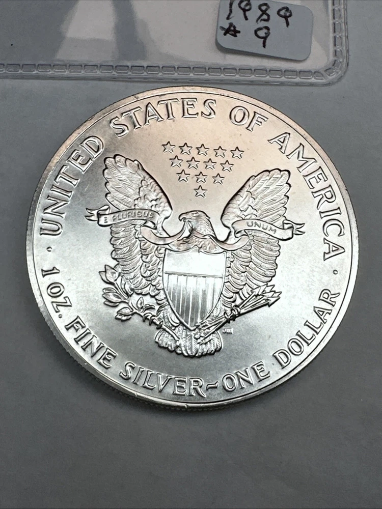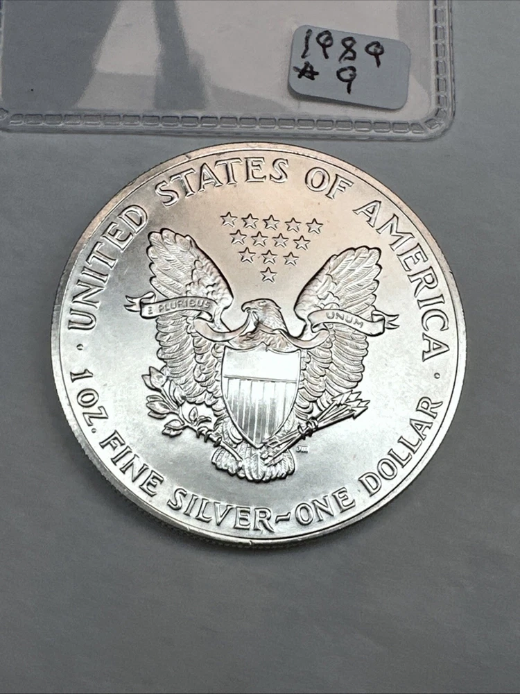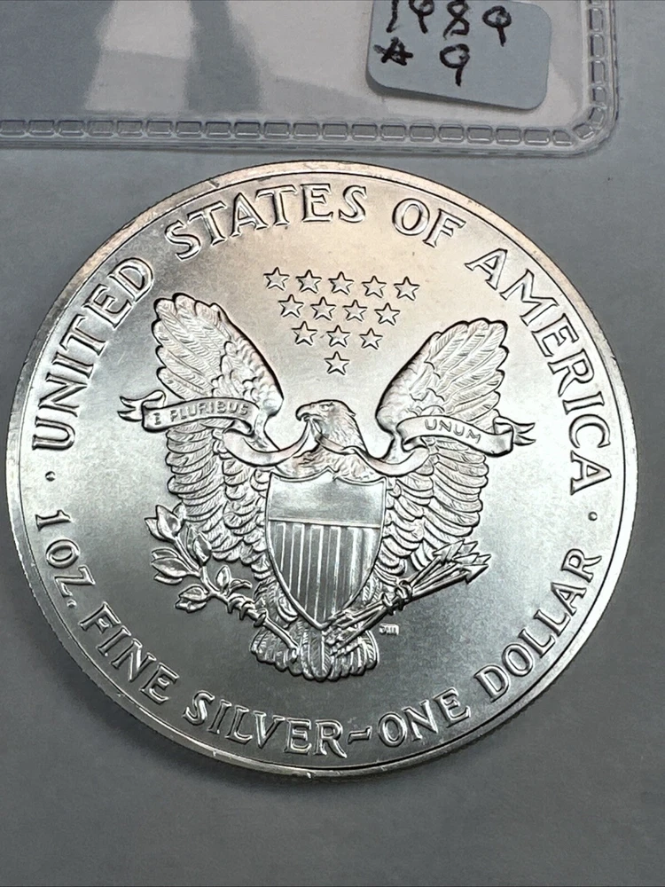 Precious Metal Content per Unit: 1 oz Certification: Uncertified Brand: Silver Eagle Composition: Silver Country/Region of Manufacture: United States Brand/Mint: U.S. Mint Grade: Ungraded Coin: American Eagle Fineness: 0.999 Total Precious Metal Content: 1oz Strike Type: Business Year: 1989