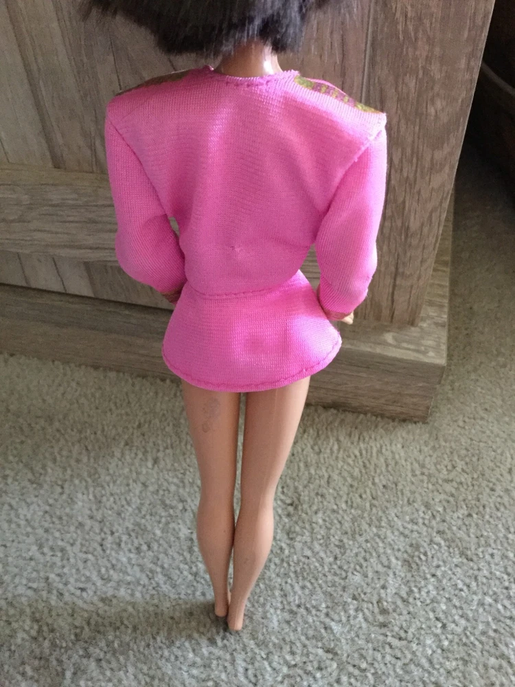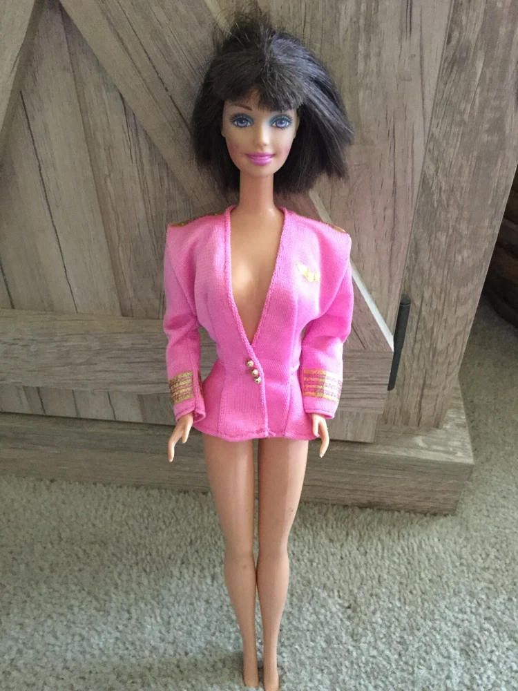 Time Period Manufactured: 1980-1989 Compatible Doll Size: 11 in Item Weight: 0.1 lb Personalized: No Ethnicity: Multiracial Number of Pieces: 1 Color: Pink Brand: Mattel Year Manufactured: 1989 Material: Cloth Handmade: No Clothing Style: Activewear & Hobbies, Flight Attendant Character: Barbie Clothing Type: Coat/Jacket Age Level: 5-7 Years Theme: Career Doll Gender: Girl Doll Set Includes: Coat/Jacket Original/Licensed Reproduction: Original Antique: No Doll Type: Fashion Doll Doll Age Group: Adult, Teens, Youth Unit of Sale: Single Unit Features: n/a Product Line: Flight Time Barbie Country/Region of Manufacture: Unknown Type: Clothing Franchise: Barbie Occasion: All Occasions Vintage: No Seller Notes: “The doll is not included.”