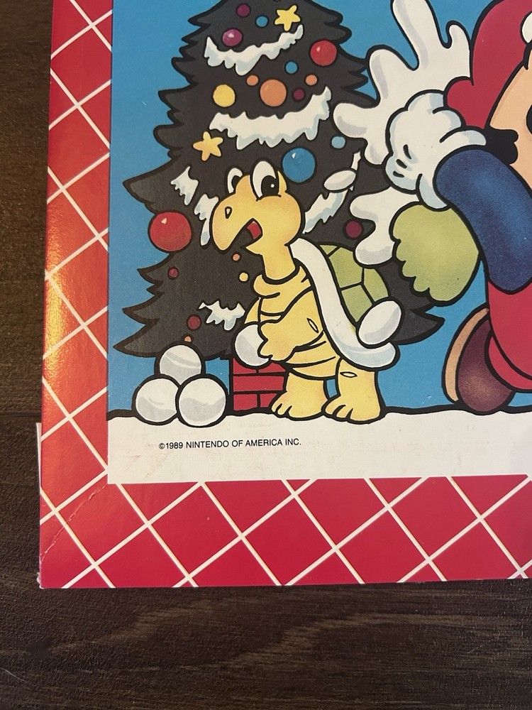 A set of 2 gift boxes from 1989 both are exactly the same. Both used with minor damage from tape use. (Damages shown in pictures) Size is 11x8 size box The product is a rare 1989 Nintendo Super Mario Bros Holiday Greetings Christmas Gift Box set featuring two sets of holiday greeting cards with images of the popular character Mario from the Super Mario Bros. video game series. This nostalgic collectible is sure to delight fans of the iconic franchise and serves as a unique and special gift for any Nintendo enthusiast.