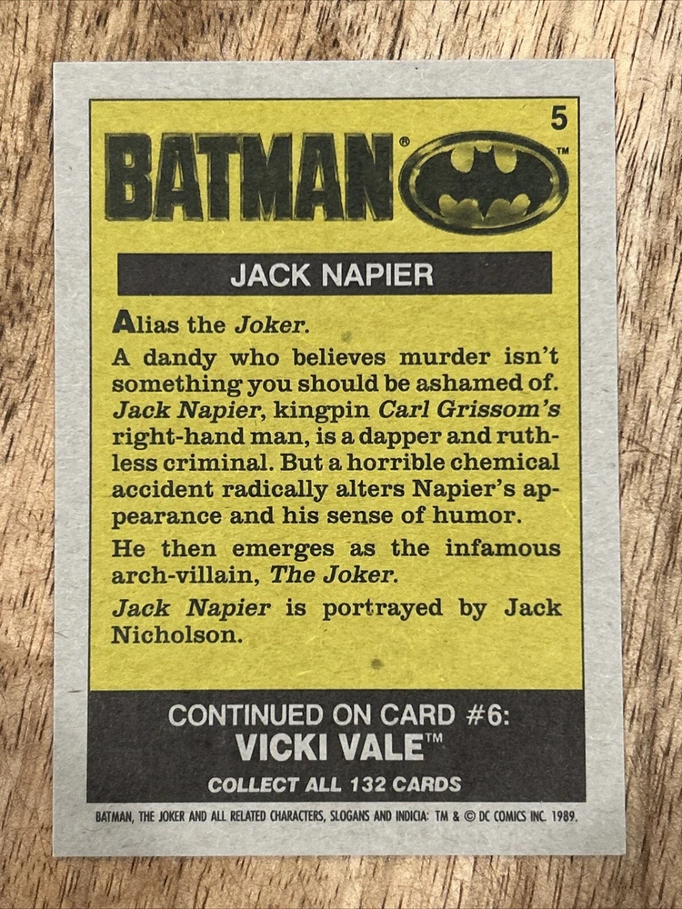 1989 Topps Batman #5 Jack Nicholson as Jack Napier