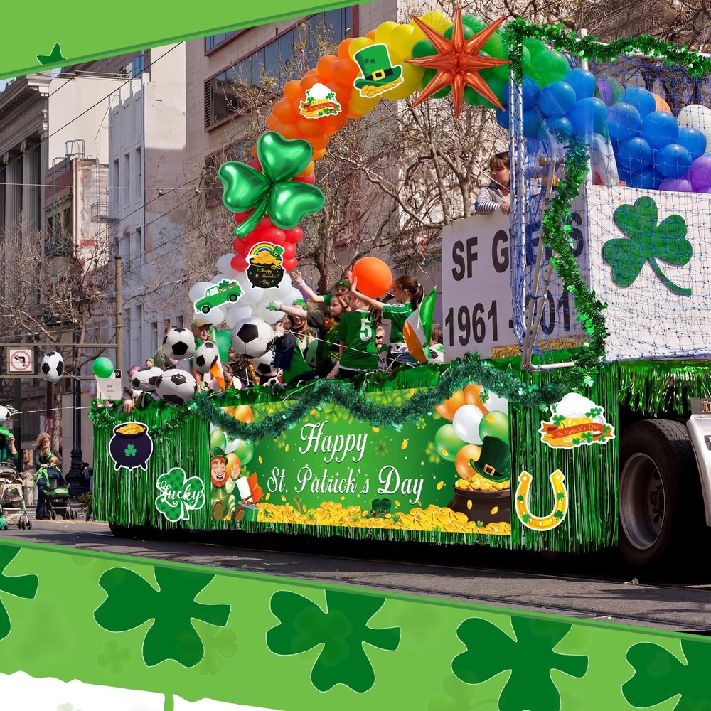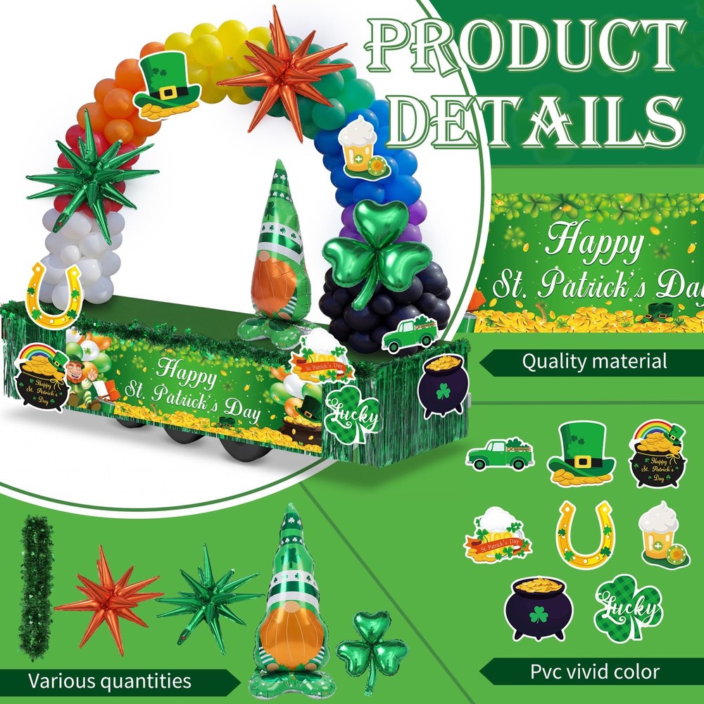 Features: Crafted from sturdy materials, these decorations resist tearing and fading, allowing you to enjoy them for multiple events. Simply them after use and bring them out again for future celebrations. With vivid colors and festive patterns, this set instantly draws attention and elevates your decor. Whether used indoors or outdoors, it creates a stunning backdrop that makes your event truly memorable. Specifications: Material: quality polyester and plastic Color: blue Size: suitable for Trailers Package includes: 1 x Welcome to Candy banner 4 x Vibrant pink foil fringe 180 x Balloons 1 x Pink Tinsel Garland 8 X Pastel theme candy lane theme PVC decorations 6 x Round Lollipop Inflatable Balloons 2 x Candy cane lane Inflatable Balloons 1 X Candy Balloon 8 x Candy shaped Honeycomb(green, blue, pink, yellow) Notes: Manual measurement, please allow slight errors on size. The colors may exist slight differences due to different screen displays Product Include: this St. Patrick's Day theme Parade Float decorative kit includes a full set of balloon arch, 1 Happy St. Patrick's Day banner, 4 vibrant green foil fringe, and 180 pcs balloons in blue, white, green, yellow, red, black, orange colors; 8 pcs St. Patrick's Day theme PVC decorations, 1 pcs leprechauns Inflatable balloons, 2 pcs Shamrock Inflatable balloons, 2 pcs Huge Explosion Star Aluminum Foil Spike Balloons in green, orange colors; 1 pcs green Tinsel Garland Ideal Size: the St. Patrick's Day theme balloon arch set is adaptable according to your decor needs; The Happy St. Patrick's Day banner measures 47 x 16 inches, 4 green foil fringe 78.7inch; The St. Patrick's Day shaped PVC decorations about 9.8inch; The leprechauns Inflatable balloon about 59 x 25inch; The Shamrock Balloons about 19 x 18 inch; The balloons about 5 inches, ; The green Tinsel Garland about 32.8ft; The Huge Explosion Star Aluminum Foil Spike Balloons about 22 inches Ideal Material: crafted from quality plastic, this St. Patrick's Day-themed decoration kit ensures durability and reliability; The balloons are made of sturdy latex, resistant to discoloration or deformation even after repeated use, making the arch and banner set a long-lasting choice for festive celebrations(The tools for securing the balloons are not ; Please prepare your own; ) Easy to Use: this St. Patrick's Day Parade Float Decoration Kit is designed for quick and effortless installation; Whether you're attaching it to a parade float, walls, windows, or tables, the process is simple-just use tape to hold everything in place; Decorating becomes easy, fast, and fun Versatile Use: beyond St. Patrick's Day parades, this St. Patrick's Day Parade Float Decoration Kit adds festive charm to countless occasions-be it a holiday party or grand opening; With its vibrant colors, it effortlessly enhances the atmosphere, bringing energy and cheer to any event