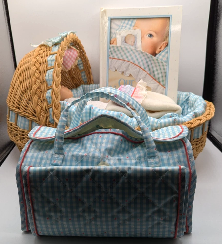 1990 American Girl Our New Baby Bitty Basket Set with Doll Accessories