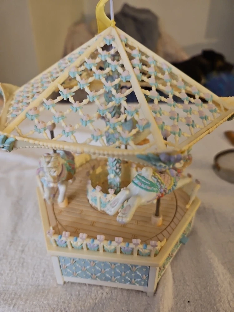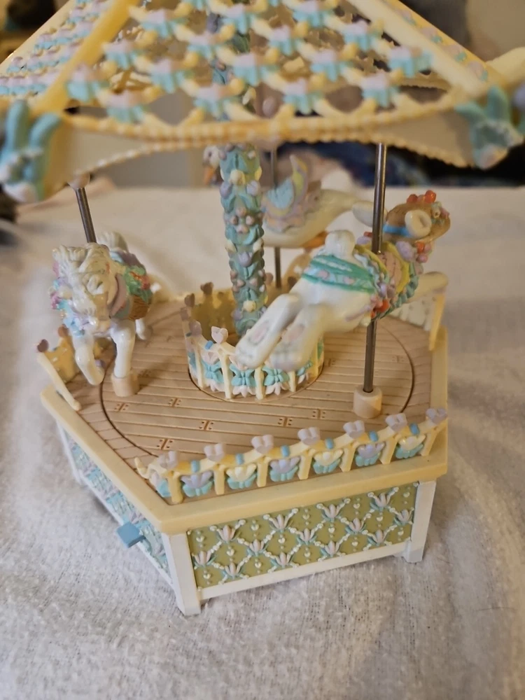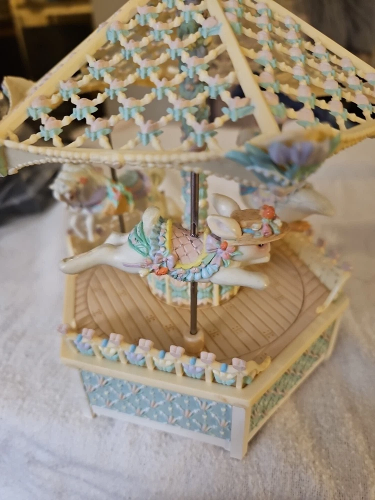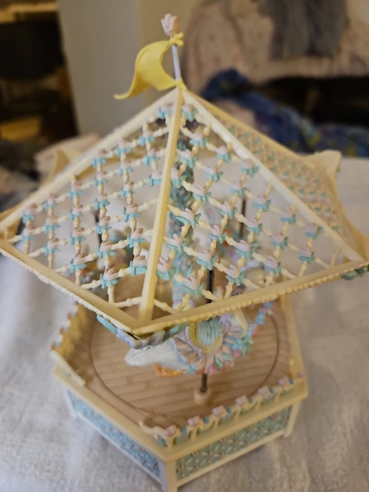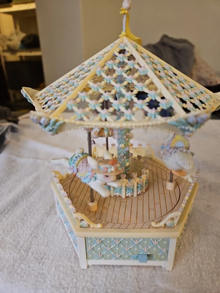 1990 Garden Gazebo Carousel by ENESCO Music Box Plays Younger Than Springtime This has been in my family since It was new. Always in curio cabinet.