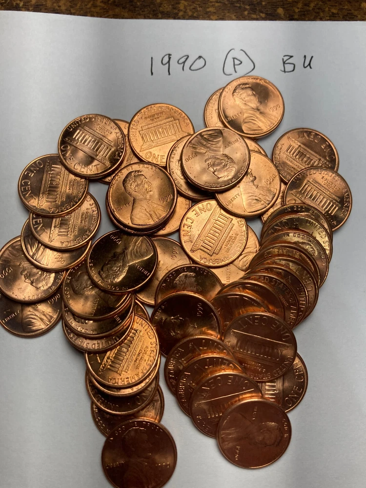 You are purchasing a full roll, 50 coins, of 1990 (P) Lincoln memorial cents that are in BU condition. The photo shows a typical roll of the rolls that I am selling. I have several of these rolls to sell. Please read a note about shipping: I strive to ship at my cost. If you pay more at checkout I can refund the overage you may pay. Rolls and lots: $4.50 for the first roll and $1.50 for each additional roll; up to $8.50. I can ship up to 30 rolls (paper wrapped) for $8.50. Single coins up to 3 coins sold at $20 or less: $1.11 for eBay standard envelope. I ship all of these at 3oz since it is safer that way. Beyond $20 value shipping is $3.50. The best way to handle multiple item purchases is to put them in your cart and then ask for an invoice from seller. That way I can provide these shipping prices without having to issue a refund. I am not in this business to make money on shipping but I must charge costs involved. There is no such thing as free shipping. It is paid for by someone, usually in the cost of the item.Please read a note about shipping: I strive to ship at my cost. If you pay more at checkout I can refund the overage you may pay. Rolls and lots: $4.50 for the first roll and $1.50 for each additional roll; up to $9.00. I can ship up to 30 rolls (paper wrapped) for $9.00. Single coins up to 3 coins shipping is $3.50. This may sound expensive but it is less than my cost. The best way to handle multiple item purchases is to put them in your cart and then ask for an invoice from seller. That way I can provide these shipping prices without having to issue a refund. I am not in this business to make money on shipping but I must charge costs involved. There is no such thing as free shipping. It is paid for by someone, usually in the cost of the item.