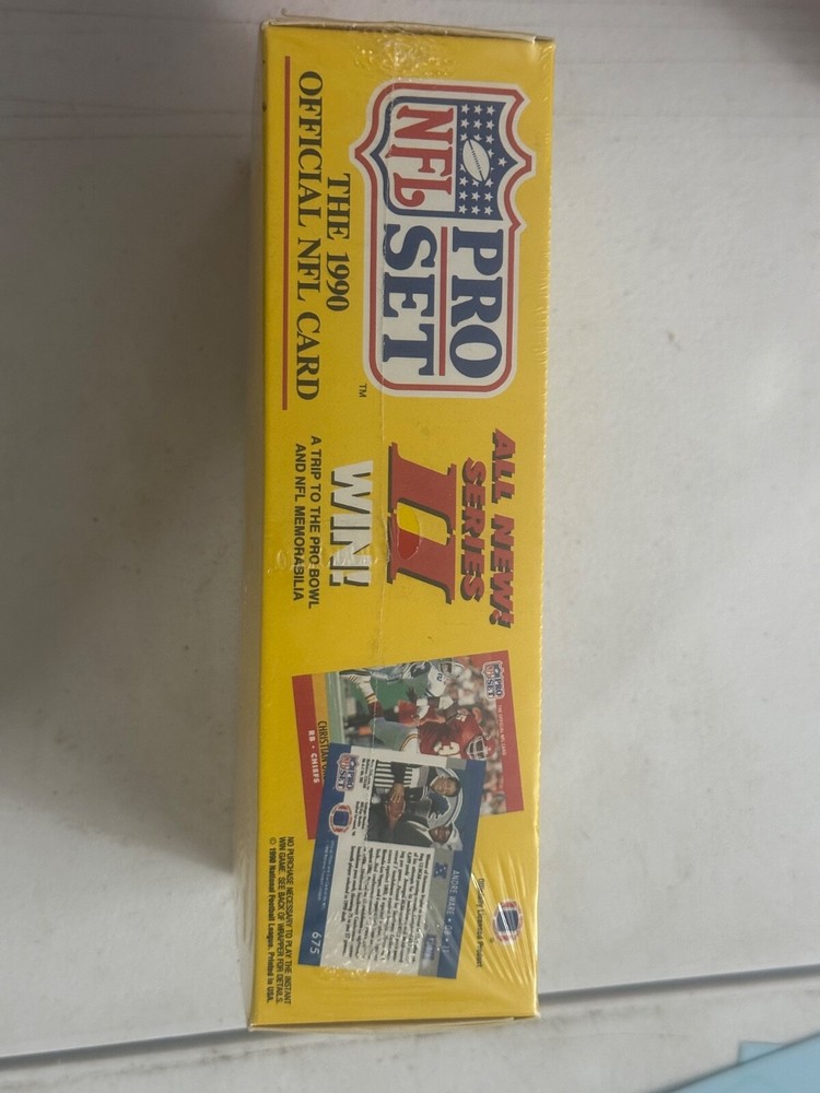 Delve into the 1990 NFL season with the Pro Set Football Series 2 Factory Sealed Box. Containing 36 packs, each pack offers a chance to uncover 504 cards featuring multiple teams and moments from the sport's exciting history. The cards are produced with quality card stock and come in a standard size, perfect for collectors and enthusiasts.This original set from 1990 captures the essence of football with its extensive collection of sports trading cards. The box is a must-have for those looking to expand their collection or to simply own a piece of football memorabilia from the early '90s. The English language cards are a testament to the game's global appeal and Pro Set's dedication to capturing the spirit of the sport.