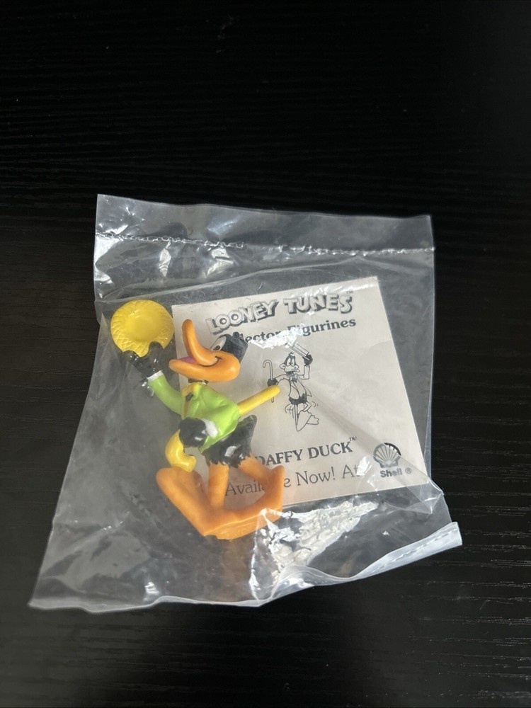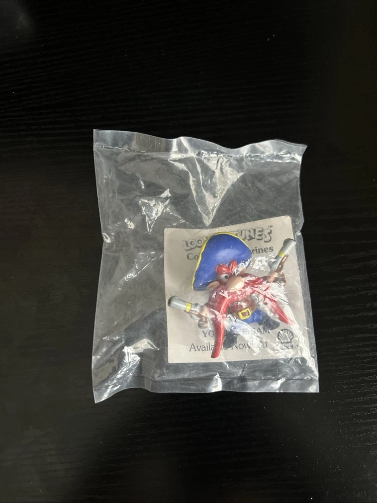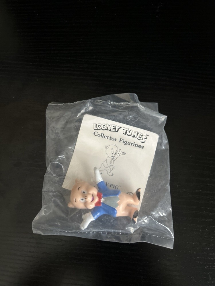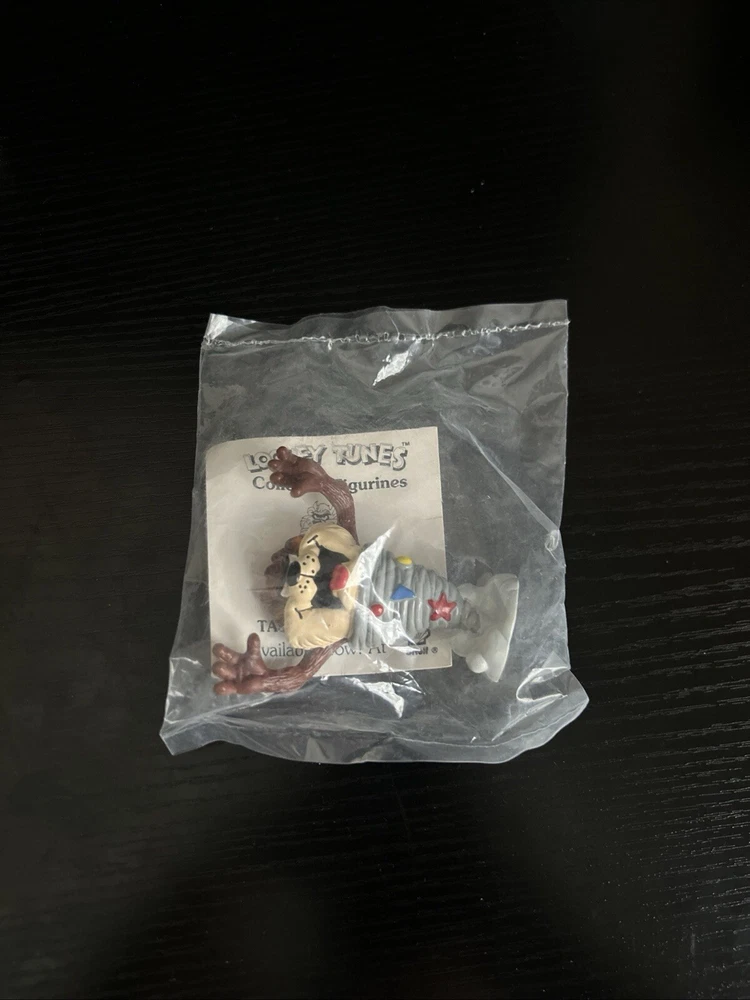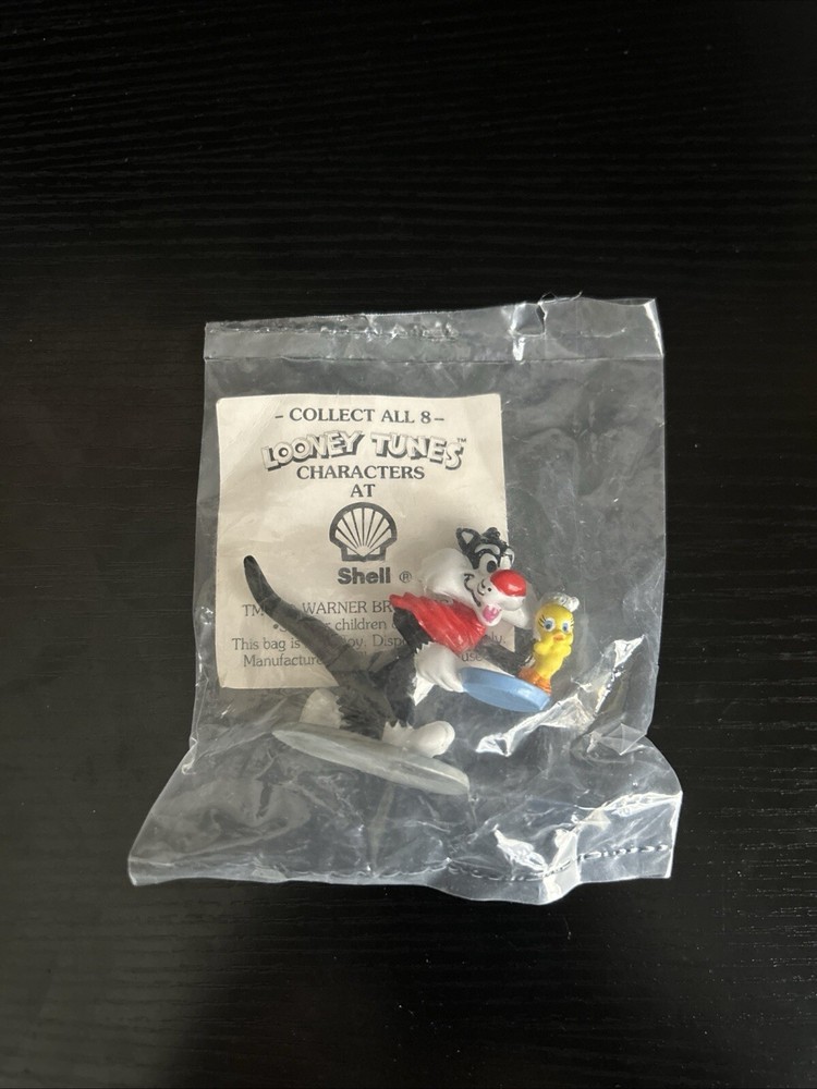 1990 Sealed Looney Tunes Shell Collector Figurines containing the characters Porky Pig, Tasmanian Devil, Yosemite Sam, Wile E. Coyote, Sylvester and Tweety, Road Runner, Bugs Bunny, and Daffy Duck.