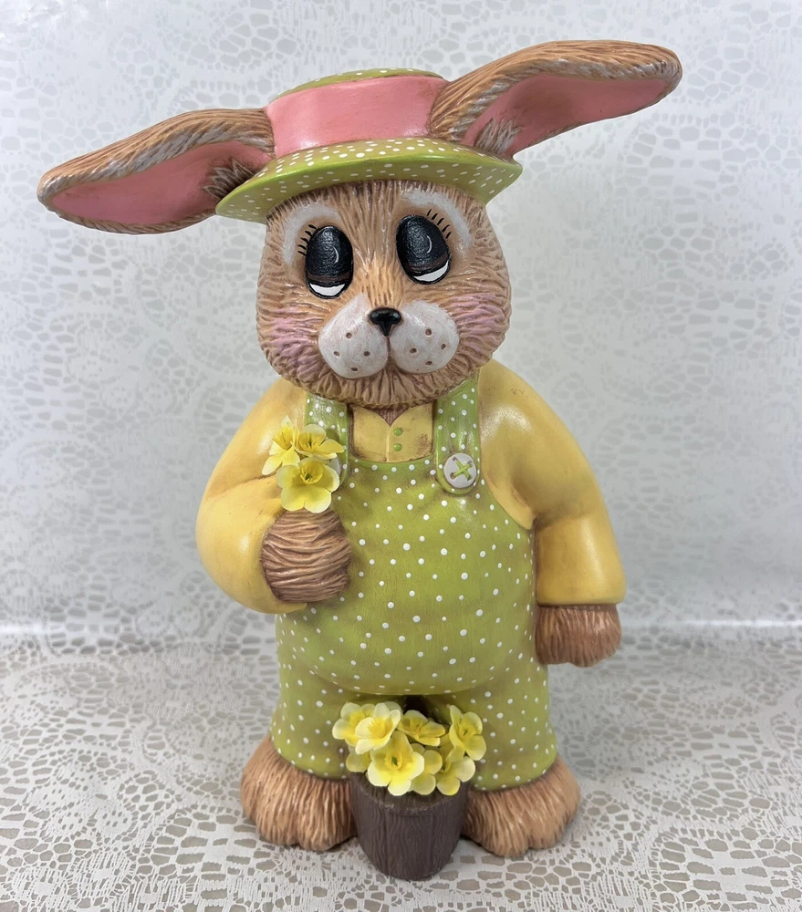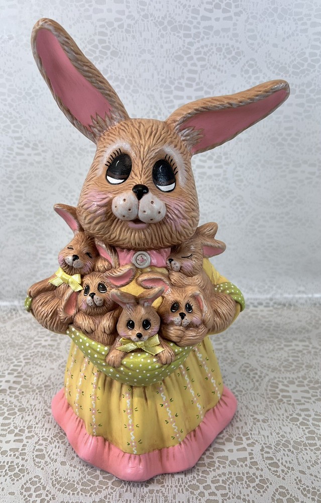Vintage 1990 Pair Ceramic Bisque Easter Bunnies Mr. & Mrs. Peter Rabbit/Babies. Adorable bunnies made March 12, 1990 by Mary. Mrs. Bunny with the babies is approx. 12" tall & Mr. Bunny is approx. 10.5" tall. Both are in very good condition, with no cracks, breaks or repairs. Sold as pictured, thanks for viewing!