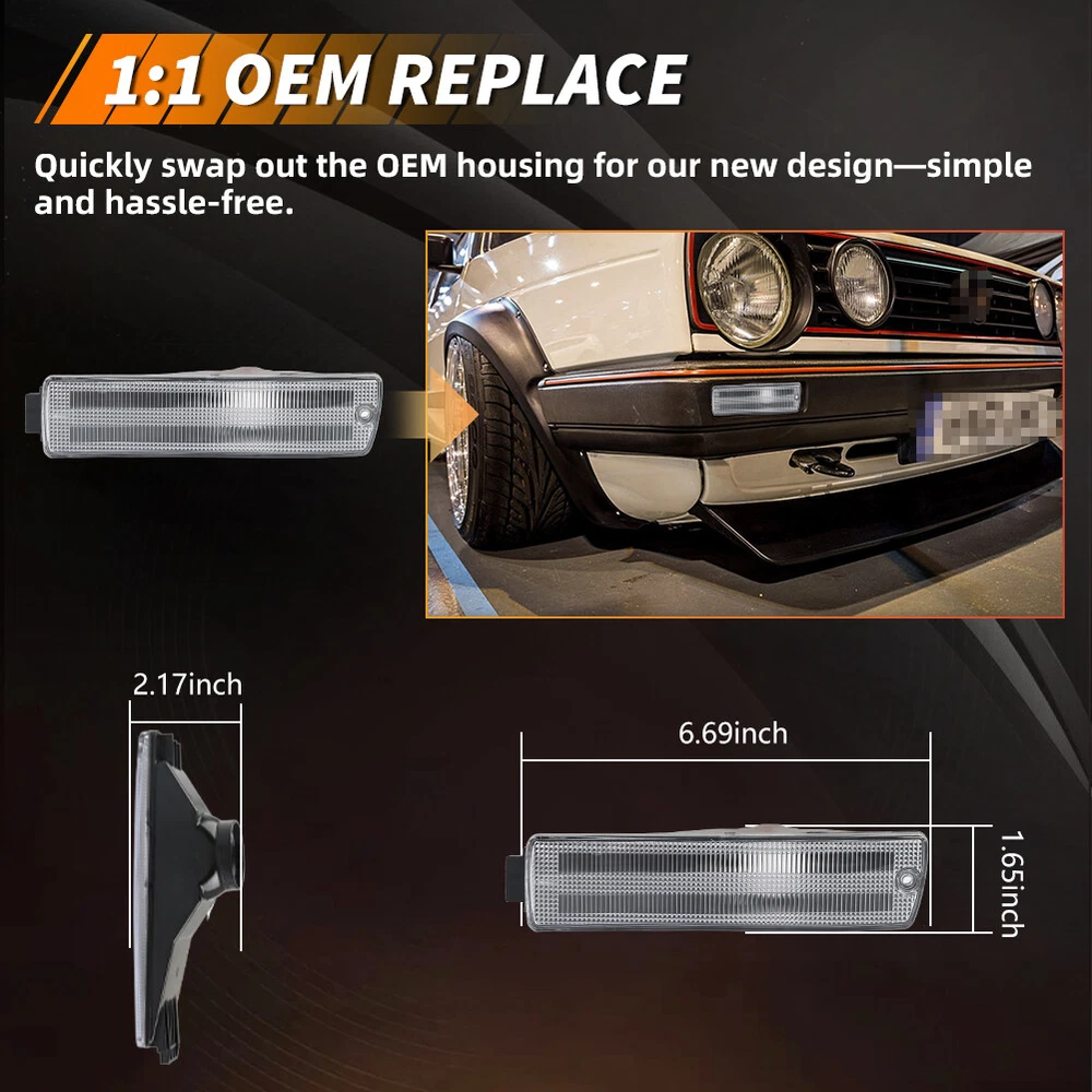 1990-1992 VW Golf Mk2 GTi Jetta Clear Front Bumper Signal Lights