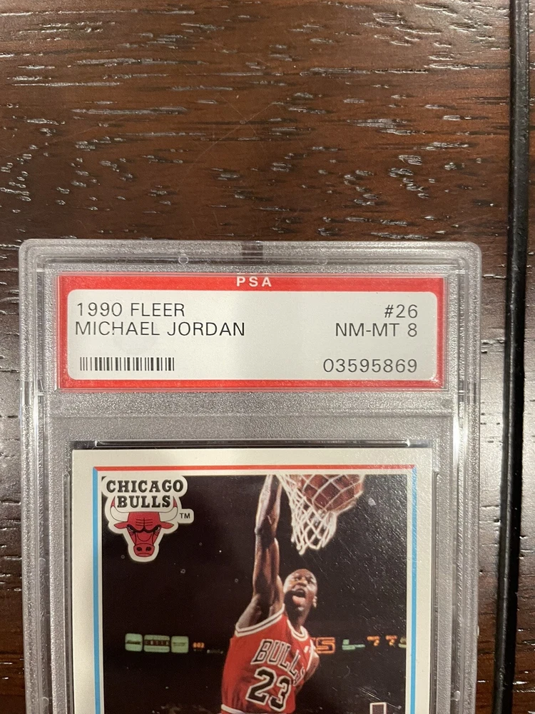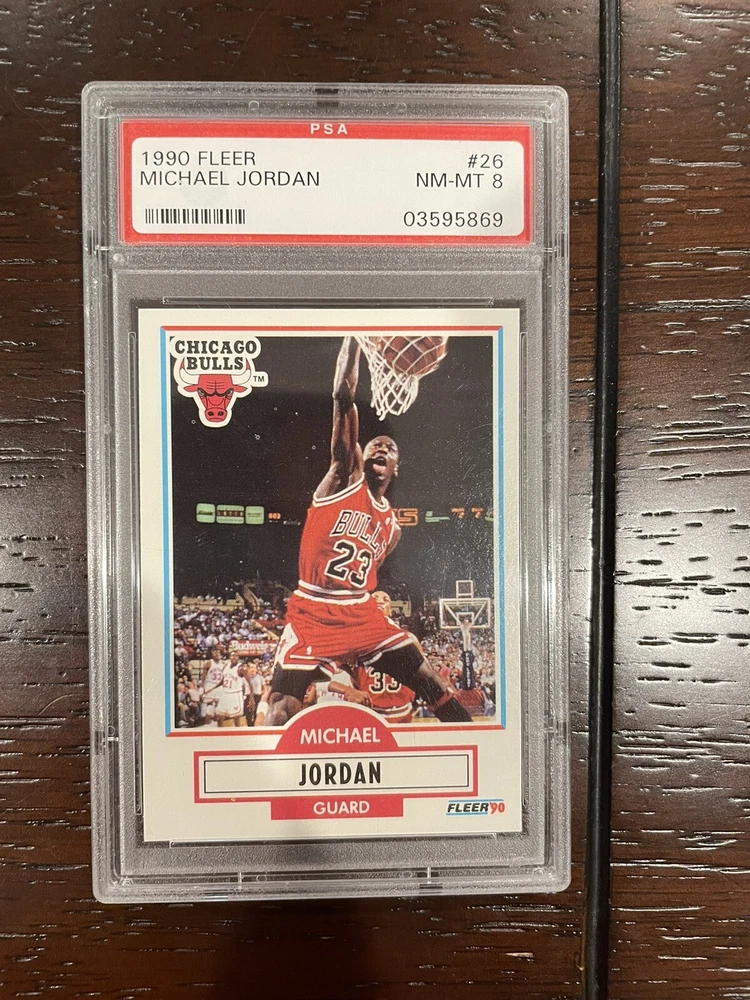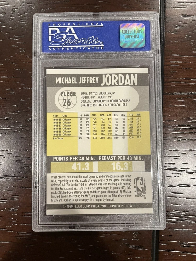 Player/Athlete:Michael JordanManufacturer:FleerSet:1990-91 FleerCard Number:26Series:FleerLeague:National Basketball Association (NBA)brand:FleerTeam:Chicago BullsSeason:1990-91Features:Base SetAdditional Description:Michael Jordan (Black Line Under Biographical Information)Sport:Basketball