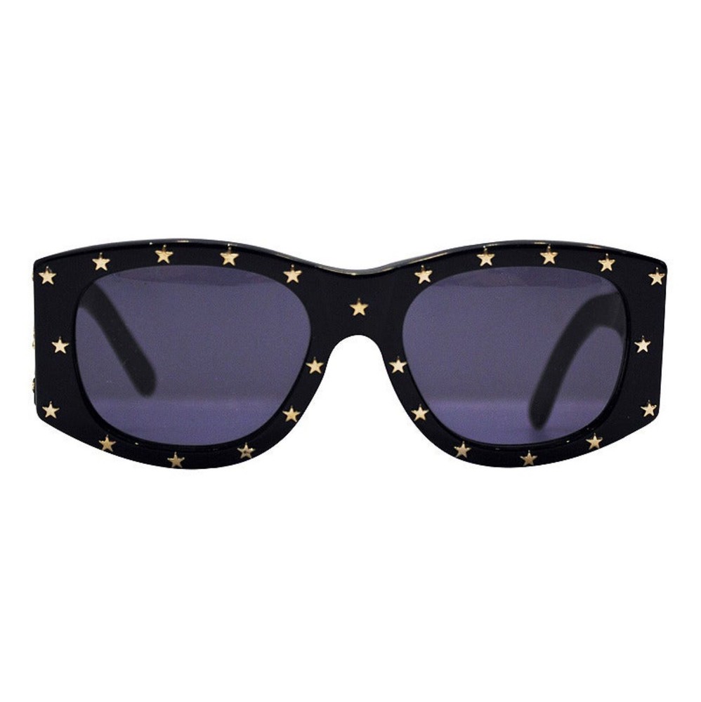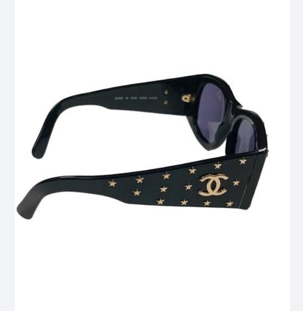 1990s Black rectangle-frame sunglasses Star stud embellishment with the brand’s signature interlocking CC logo Tinted lenses Comes with Chanel hard case sunglasses case. These are extremely rare find. In very good vintage condition. Authenticity guaranteed.