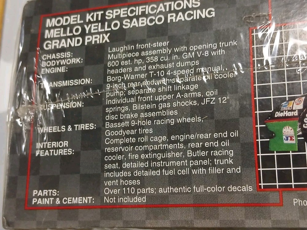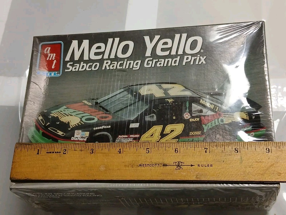 Small tears in plastic seal For sale is a 1991 AMT Mello Yello Sabco Racing Grand Prix model kit, sealed and brand new in its original box. This 1:25 scale kit features a NASCAR subject and is perfect for any transportation-themed model kit collector. The kit is an unassembled kit, and has not been customized in any way. This model kit is a great addition to any collection, and would make a perfect gift for any model car enthusiast. The kit includes all parts necessary to assemble a fully functional and detailed model of the Mello Yello Sabco Racing Grand Prix. Don't miss out on the opportunity to own this rare and highly sought-after model kit.
