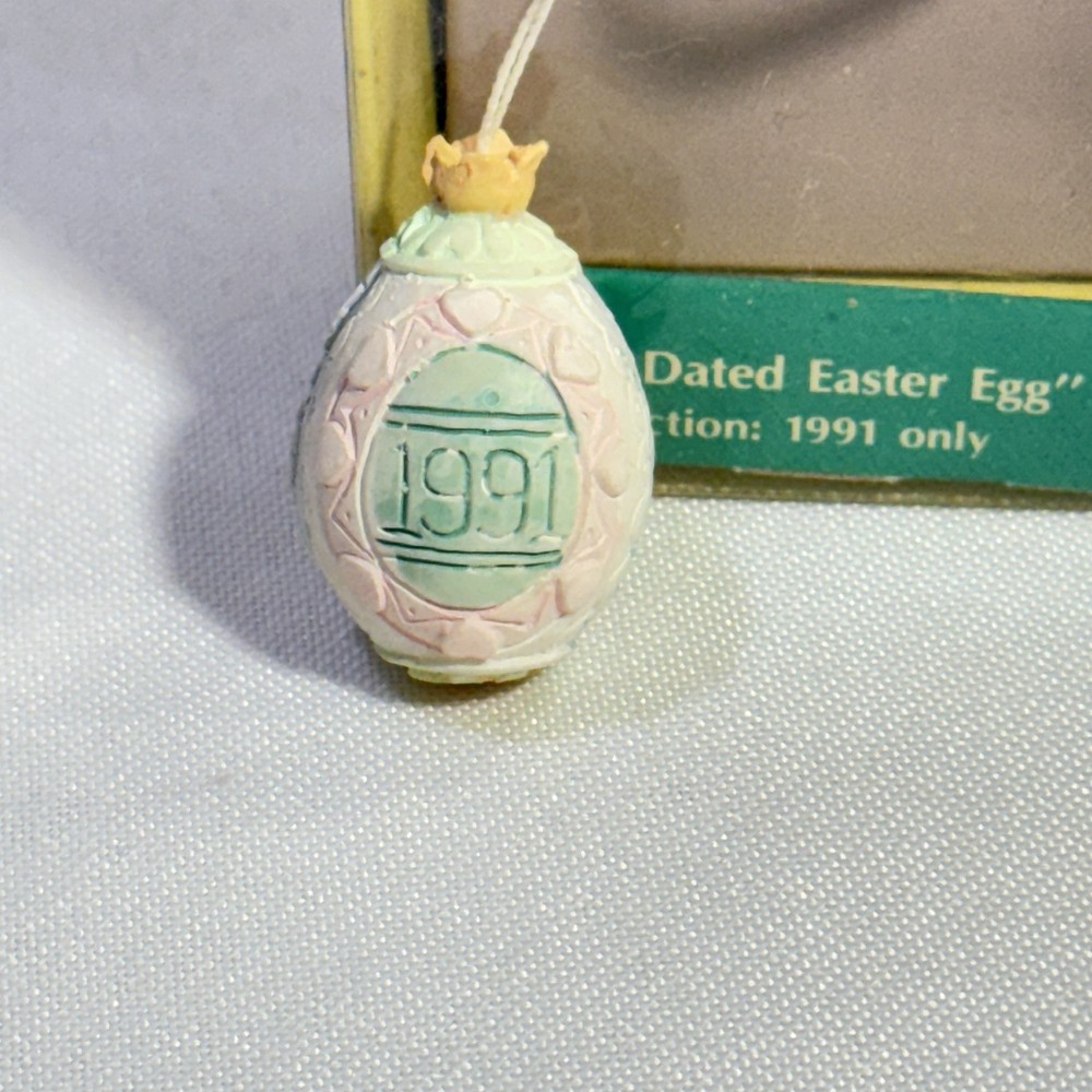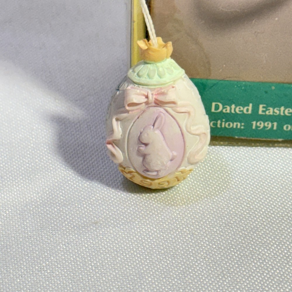 Add a touch of springtime charm to your collection with this delightful Easter Egg Figurine from Enesco's 1991 Small Wonders Miniature Collection. Crafted in resin, this whimsical ornament features a multicolored Easter egg adorned with a cute bunny character, embodying the joy and vibrancy of the Easter season. With a height of 2.25 inches, this small yet captivating figurine is perfect for adult collectors who appreciate asymmetrical designs. Whether it's to enhance your Easter decor or to expand your figurine collection, this piece, echoing the era of the 1990s, brings the essence of garden spring festivities right to your home.