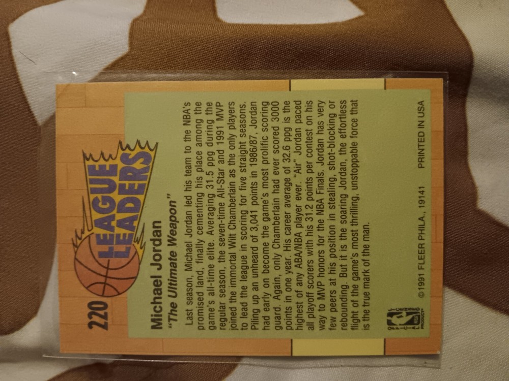 This 1991 Fleer sports trading card features Michael Jordan of the Chicago Bulls, card number 29. The card is made of 20 pt. card stock and is an original, not a licensed reprint. It is part of the base set and has a LEAGUE LEADERS parallel/variety. The card is in standard size and was manufactured in the United States in 1991 by Fleer.The card is suitable for collectors of basketball memorabilia and fans of the Chicago Bulls. It is a great addition to any sports trading card collection and would make a good gift. The card is not autographed and does not have any vintage features. The language is in English and the set is from the National Basketball Association (NBA).