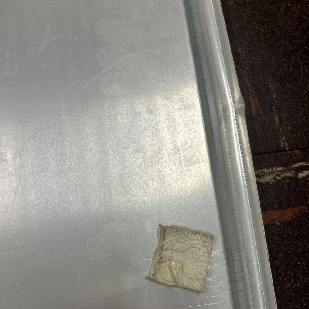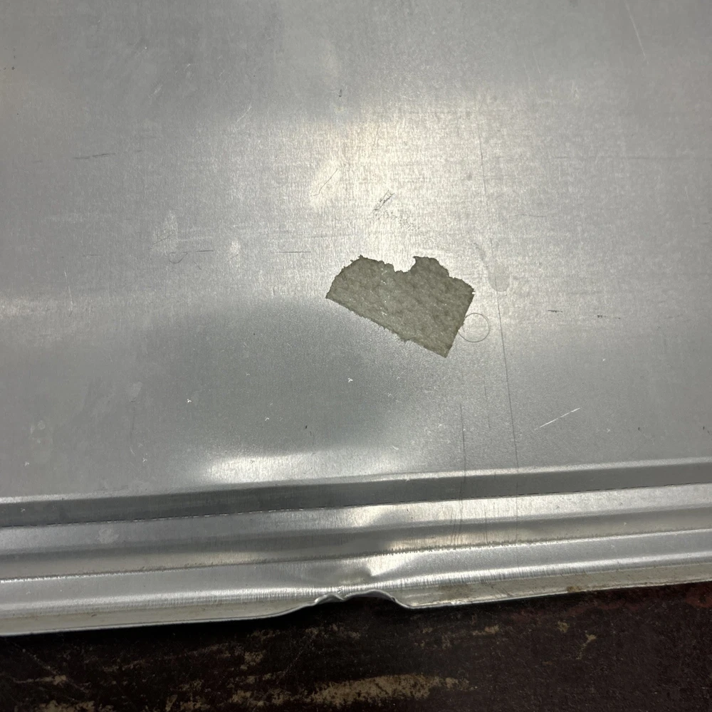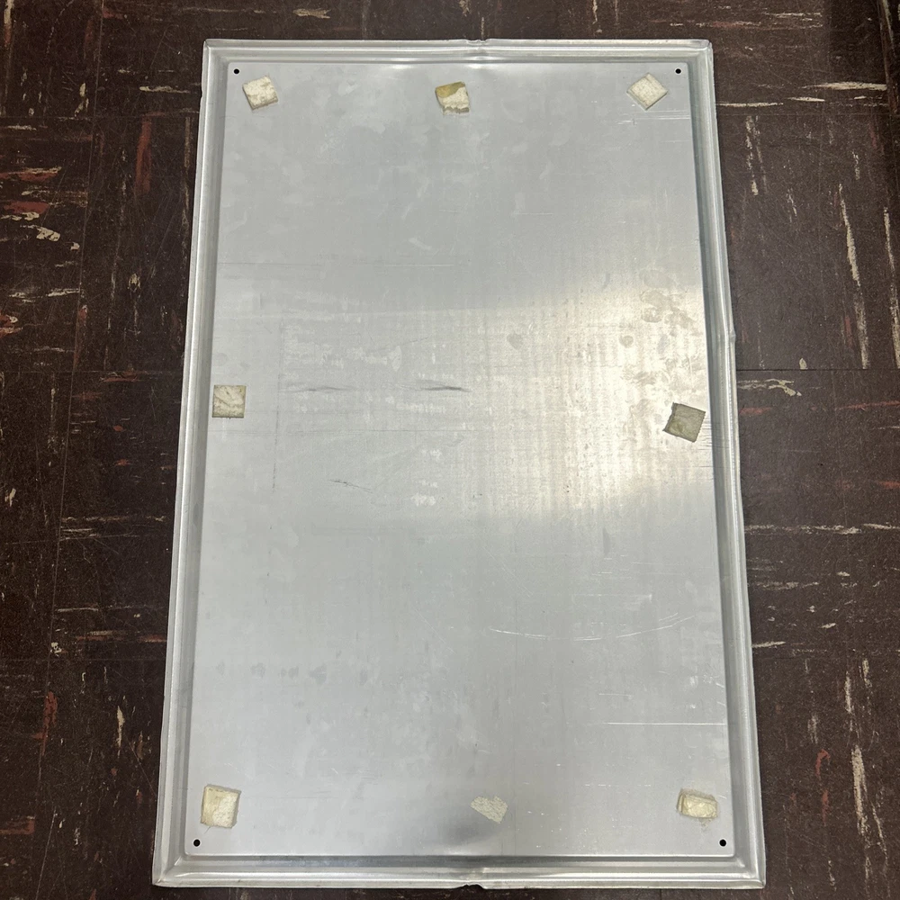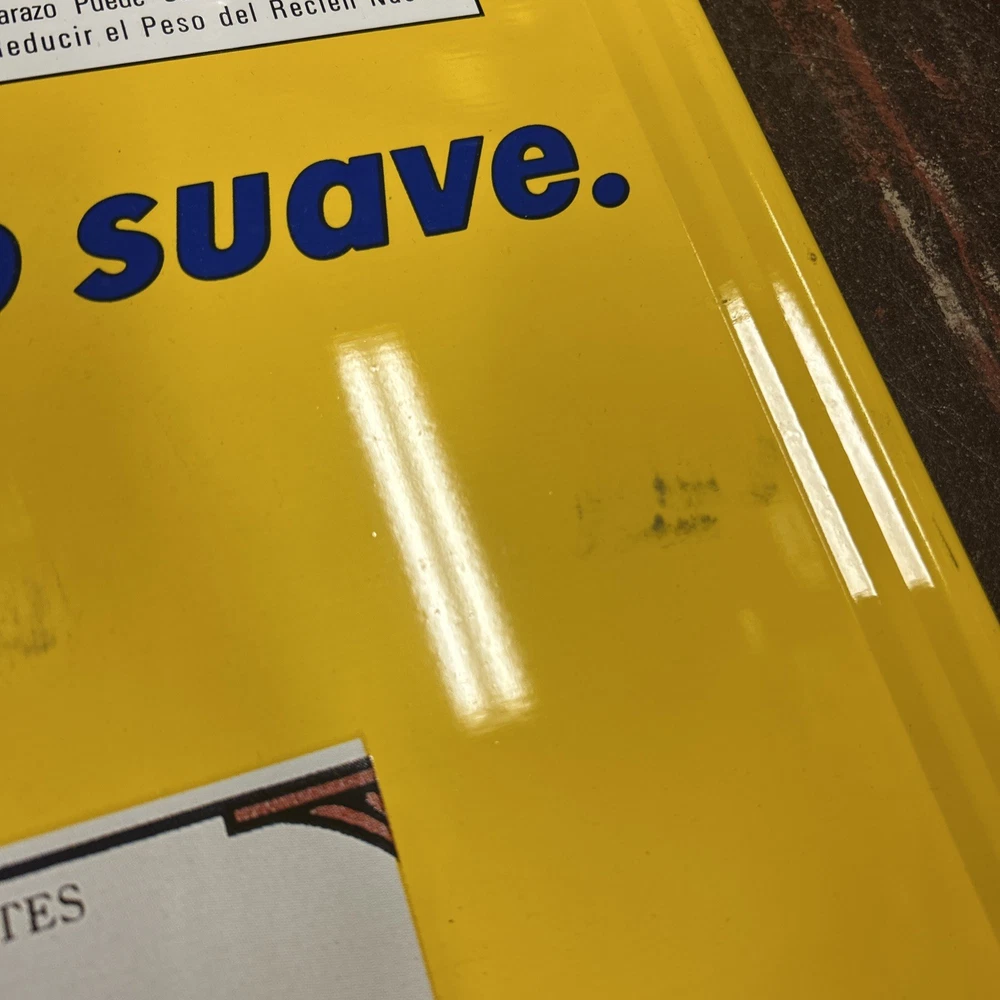 Nice sign, just has a few minor bends/dent and light black marks on front (I did not try to remove). Lays flat on a wall. Mounting tape has been used. See pics!