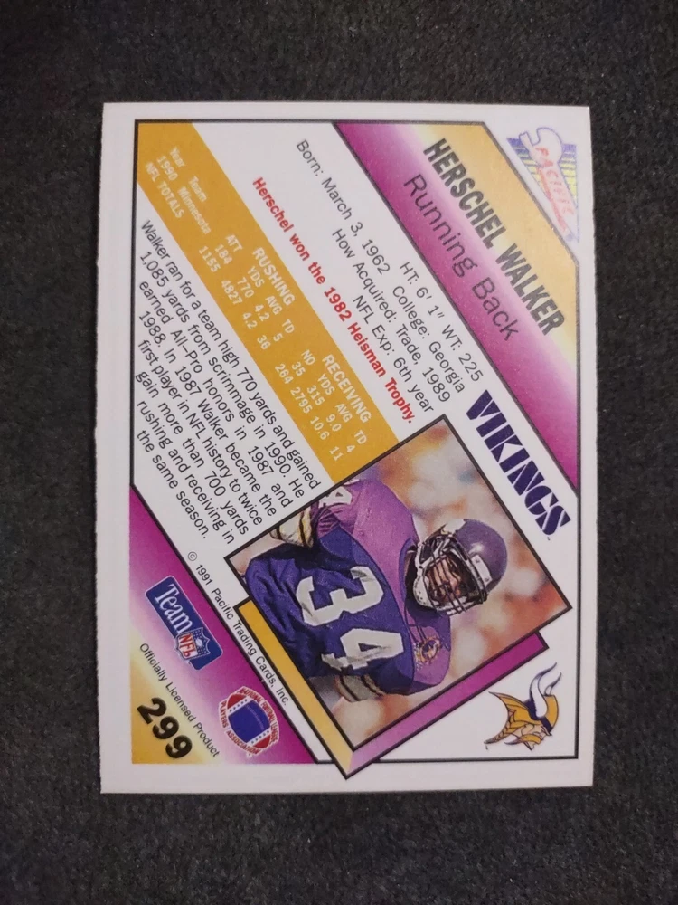 1991 Pacific #299 Herschel Walker Minnesota Vikings Football Card