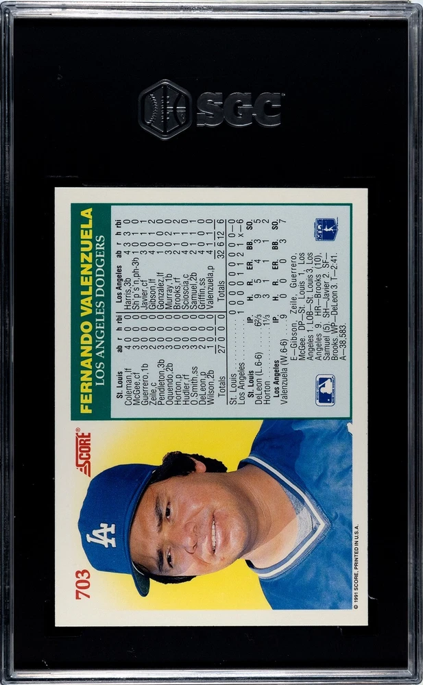 1991 Score No-Hit Club Fernando Valenzuela #703 Los Angeles Dodgers SGC 10