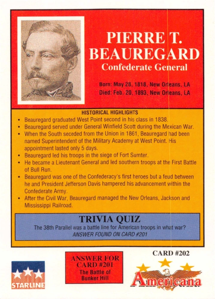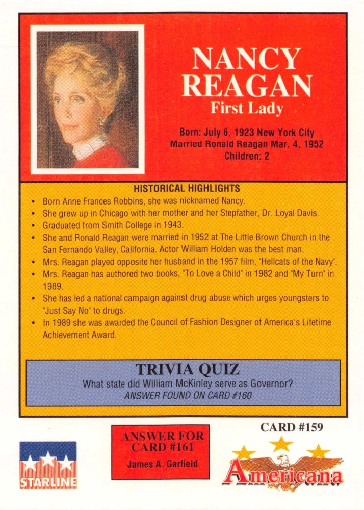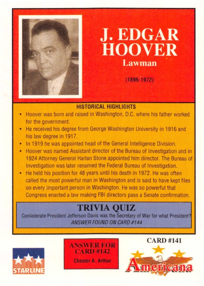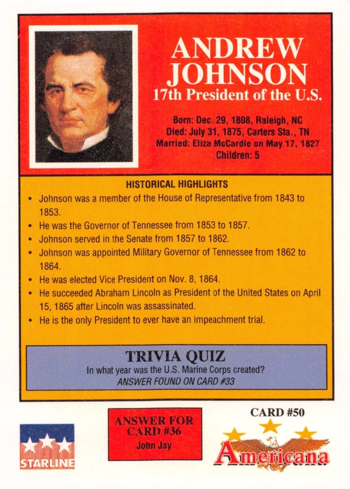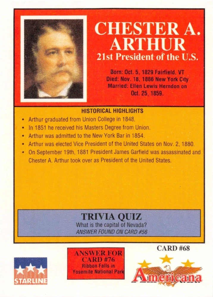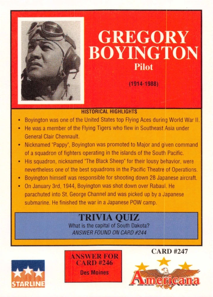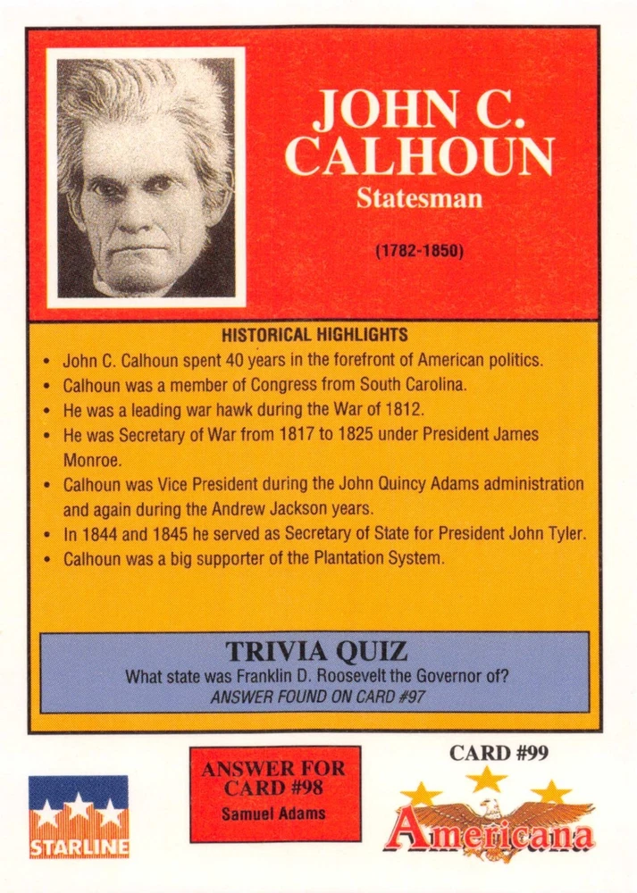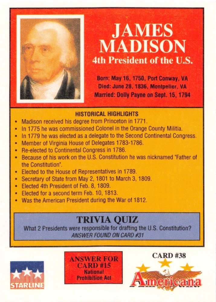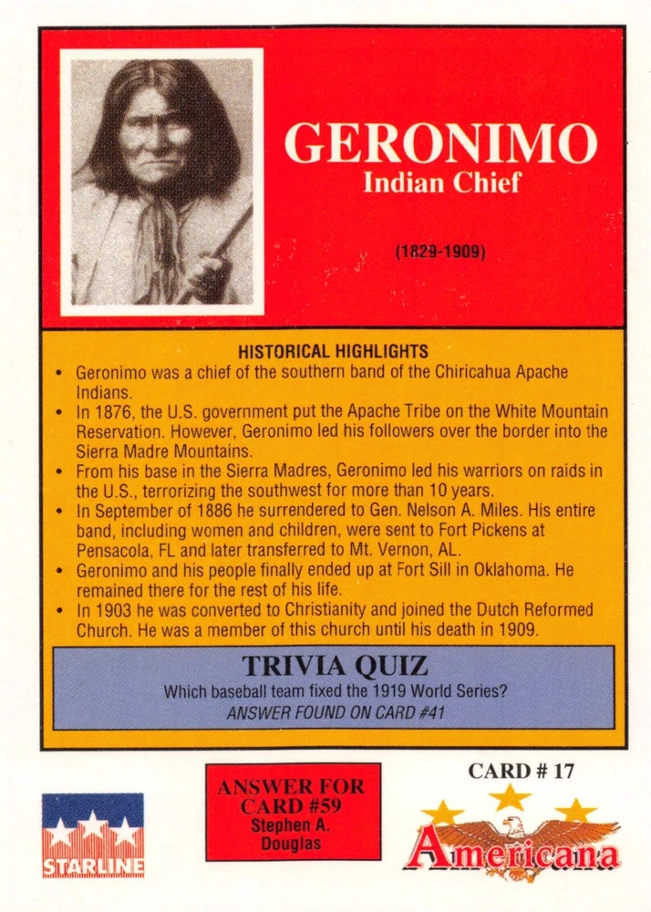 This listing is for your choice of any available 1991 Starline Americana Historic Trading Cards card from the drop-down menu above. Photos show front and backside of each card, be sure to scroll sideways to view front and backside photos! Any questions? Please ask before buying. International "USPS First Class Mail" will not include a tracking number for this item, if you would like a tracking number please choose the "eBay International Standard Shipping" option when you check out. As with all of my "pick-a-card" listings, I will be shipping with "eBay Standard Envelope". The rules of this envelope state that it cannot be too thick, so please expect your order to be packaged as follows: 1 to 6 cards will be slid into a single sleeve, the sleeve will then be slid inside of a semi-rigid Card-Saver. 7 to 12 cards will be slid into a double sleeve, 13 to 18 cards into a triple sleeve, 19 to 24 cards into a quadruple sleeve(up to six cards per sleeve). The double, triple and quadruple sleeve shipping will not have the Card-Saver. If you buy more than 1 card and want it packaged with more than 1 Card-Saver(or 1 sleeve per card), I kindly ask that you contact me before purchasing to be sure that this is possible to have it done with the stated shipping charge, or if additional shipping would be required. If you do not contact me, then you can expect to receive your order packaged as I have explained here. Please do not expect rigid top-loaders to be included, I don't normally keep a lot of them in stock, but if you message me prior to ordering I will be able to see if I have any that can be included with your order - additional shipping may be required. In order to get free combined shipping from this and any of my other "pick-a-card" listings, you must add all of your cards to the cart and check out when you are done shopping. If you do not use the cart you will be overpaying on shipping and I cannot refund you on over-payed shipping. So please use the cart and get your FREE COMBINED SHIPPING!