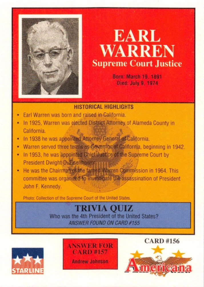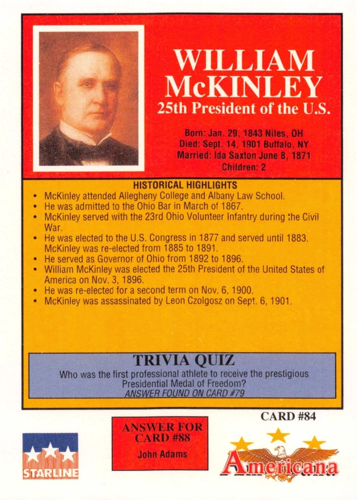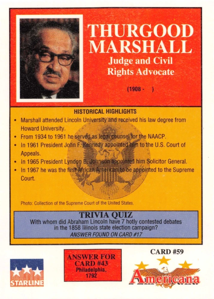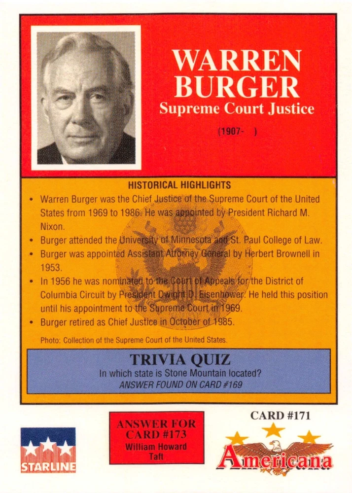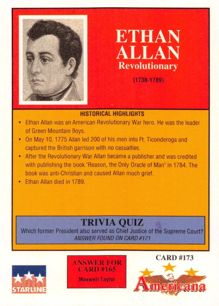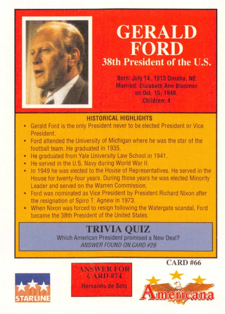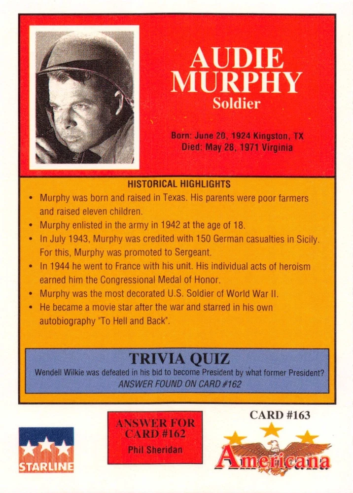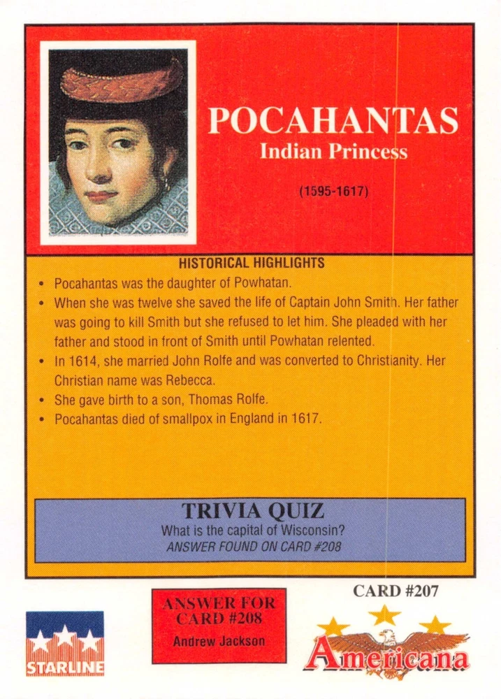 This listing is for your choice of any available 1991 Starline Americana Historic Trading Cards card from the drop-down menu above. Photos show front and backside of each card, be sure to scroll sideways to view front and backside photos! Any questions? Please ask before buying. International "USPS First Class Mail" will not include a tracking number for this item, if you would like a tracking number please choose the "eBay International Standard Shipping" option when you check out. As with all of my "pick-a-card" listings, I will be shipping with "eBay Standard Envelope". The rules of this envelope state that it cannot be too thick, so please expect your order to be packaged as follows: 1 to 6 cards will be slid into a single sleeve, the sleeve will then be slid inside of a semi-rigid Card-Saver. 7 to 12 cards will be slid into a double sleeve, 13 to 18 cards into a triple sleeve, 19 to 24 cards into a quadruple sleeve(up to six cards per sleeve). The double, triple and quadruple sleeve shipping will not have the Card-Saver. If you buy more than 1 card and want it packaged with more than 1 Card-Saver(or 1 sleeve per card), I kindly ask that you contact me before purchasing to be sure that this is possible to have it done with the stated shipping charge, or if additional shipping would be required. If you do not contact me, then you can expect to receive your order packaged as I have explained here. Please do not expect rigid top-loaders to be included, I don't normally keep a lot of them in stock, but if you message me prior to ordering I will be able to see if I have any that can be included with your order - additional shipping may be required. In order to get free combined shipping from this and any of my other "pick-a-card" listings, you must add all of your cards to the cart and check out when you are done shopping. If you do not use the cart you will be overpaying on shipping and I cannot refund you on over-payed shipping. So please use the cart and get your FREE COMBINED SHIPPING!