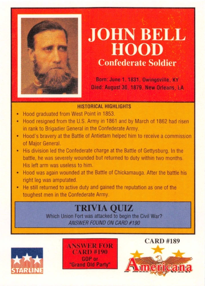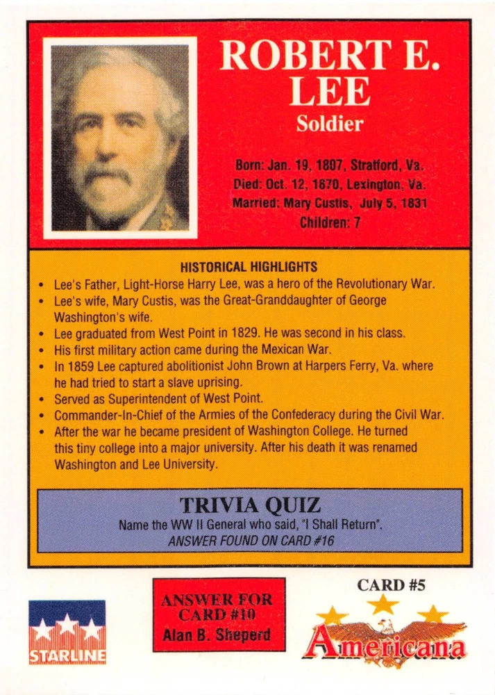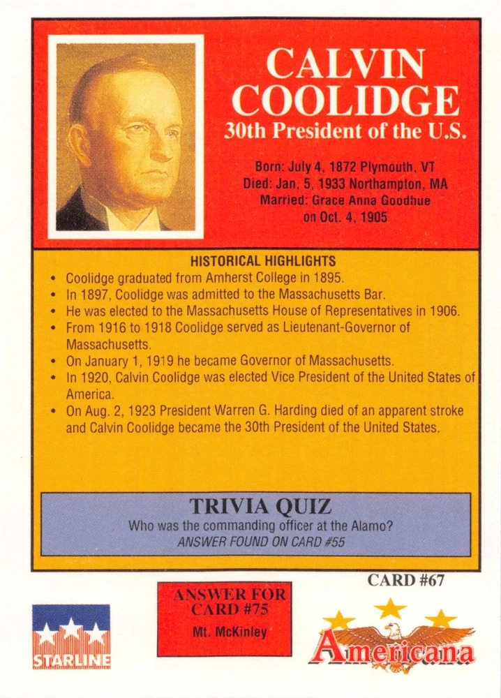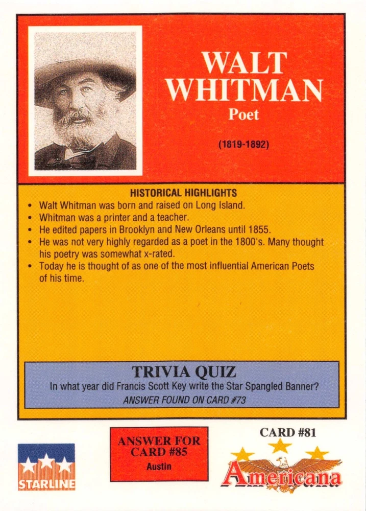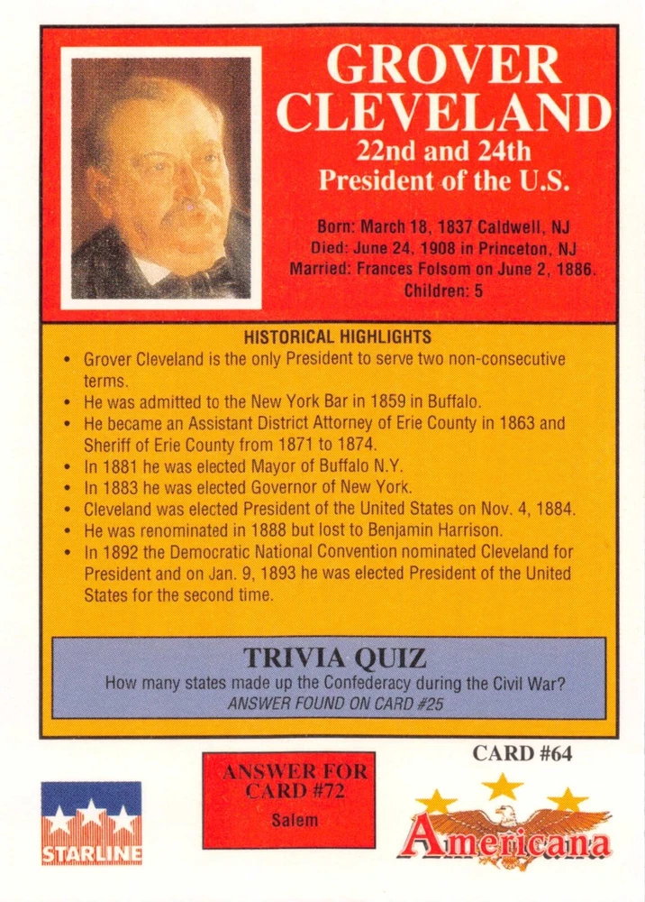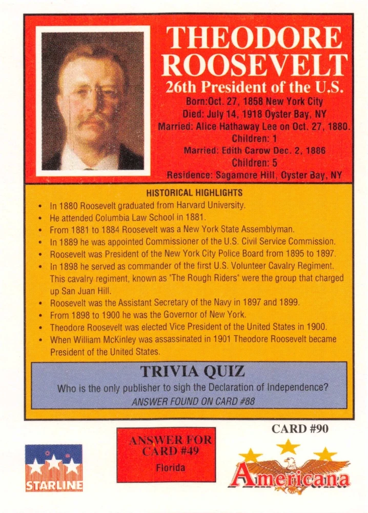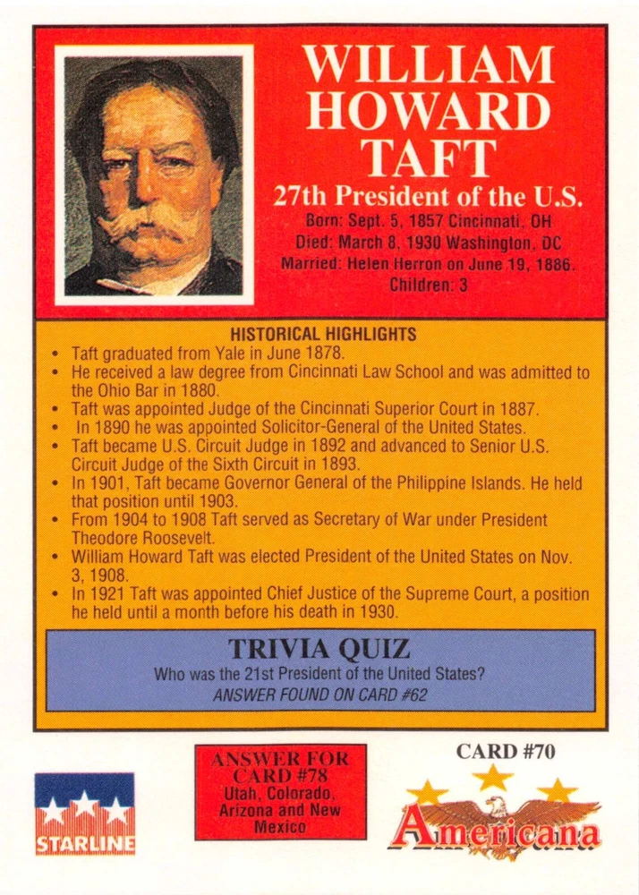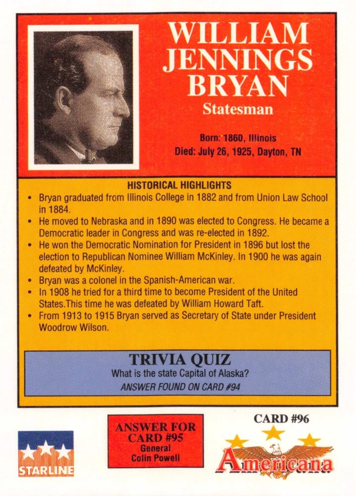 This listing is for your choice of any available 1991 Starline Americana Historic Trading Cards card from the drop-down menu above. Photos show front and backside of each card, be sure to scroll sideways to view front and backside photos! Any questions? Please ask before buying. International "USPS First Class Mail" will not include a tracking number for this item, if you would like a tracking number please choose the "eBay International Standard Shipping" option when you check out. As with all of my "pick-a-card" listings, I will be shipping with "eBay Standard Envelope". The rules of this envelope state that it cannot be too thick, so please expect your order to be packaged as follows: 1 to 6 cards will be slid into a single sleeve, the sleeve will then be slid inside of a semi-rigid Card-Saver. 7 to 12 cards will be slid into a double sleeve, 13 to 18 cards into a triple sleeve, 19 to 24 cards into a quadruple sleeve(up to six cards per sleeve). The double, triple and quadruple sleeve shipping will not have the Card-Saver. If you buy more than 1 card and want it packaged with more than 1 Card-Saver(or 1 sleeve per card), I kindly ask that you contact me before purchasing to be sure that this is possible to have it done with the stated shipping charge, or if additional shipping would be required. If you do not contact me, then you can expect to receive your order packaged as I have explained here. Please do not expect rigid top-loaders to be included, I don't normally keep a lot of them in stock, but if you message me prior to ordering I will be able to see if I have any that can be included with your order - additional shipping may be required. In order to get free combined shipping from this and any of my other "pick-a-card" listings, you must add all of your cards to the cart and check out when you are done shopping. If you do not use the cart you will be overpaying on shipping and I cannot refund you on over-payed shipping. So please use the cart and get your FREE COMBINED SHIPPING!