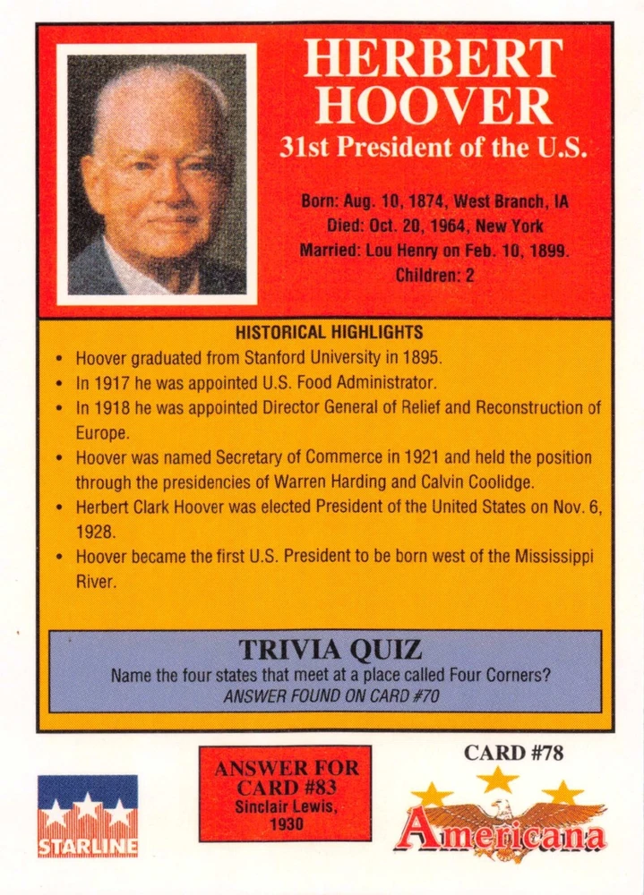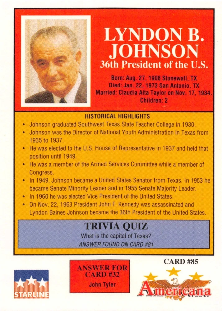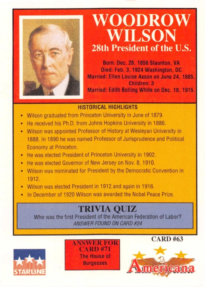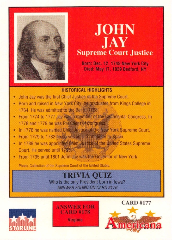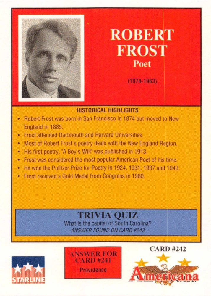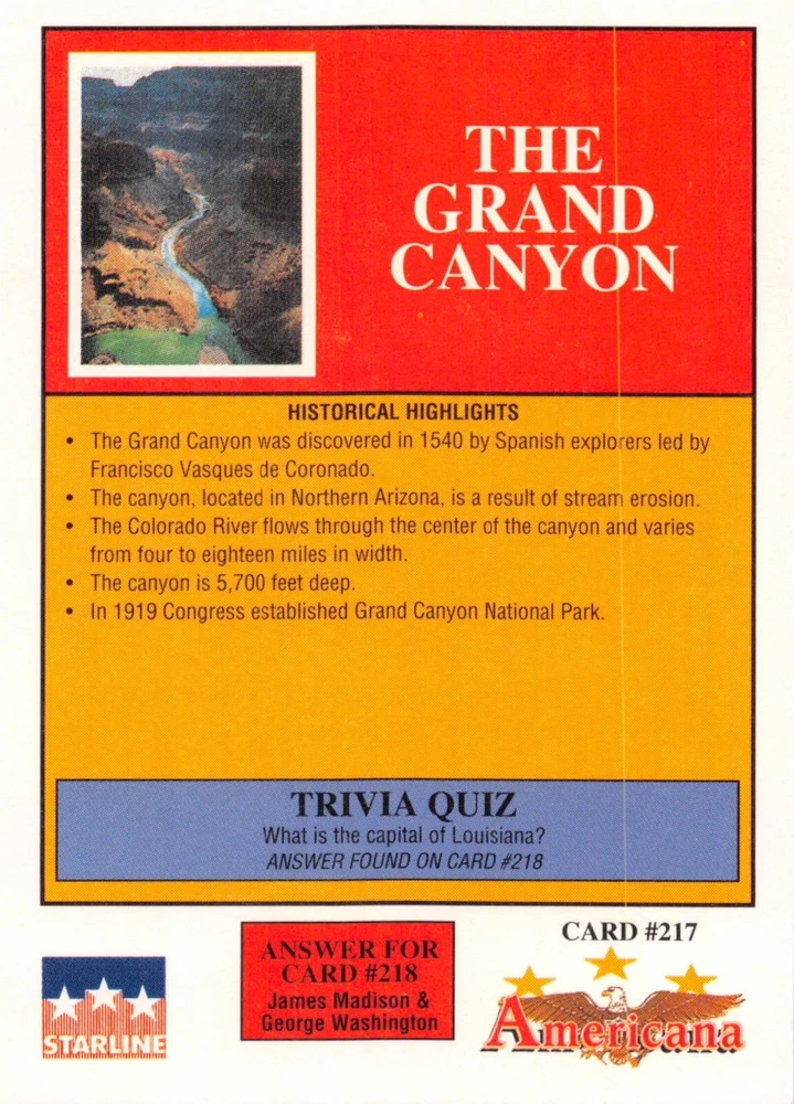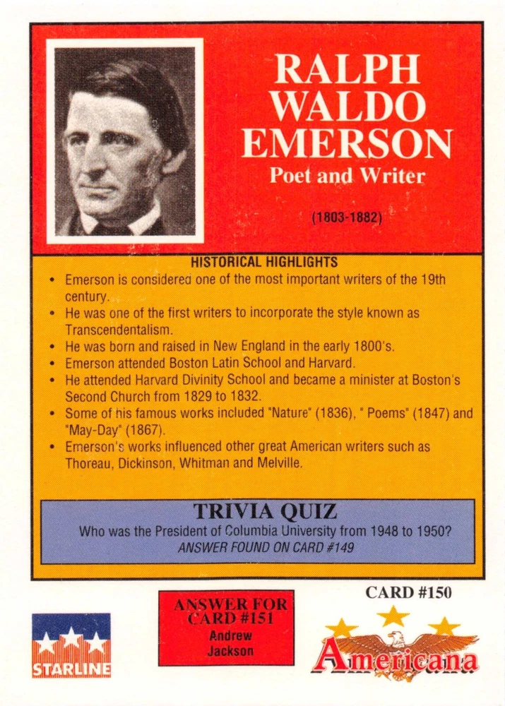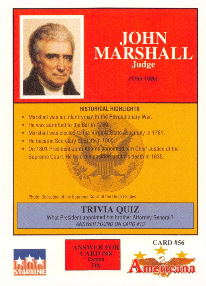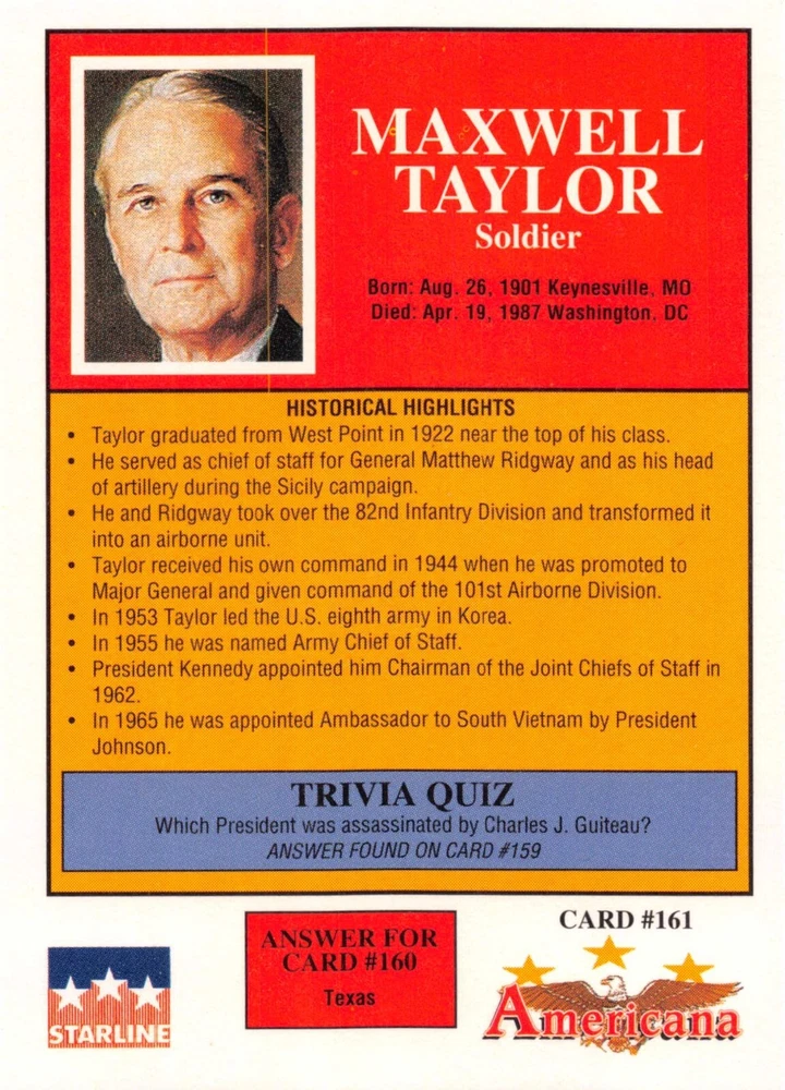 This listing is for your choice of any available 1991 Starline Americana Historic Trading Cards card from the drop-down menu above. Photos show front and backside of each card, be sure to scroll sideways to view front and backside photos! Any questions? Please ask before buying. International "USPS First Class Mail" will not include a tracking number for this item, if you would like a tracking number please choose the "eBay International Standard Shipping" option when you check out. As with all of my "pick-a-card" listings, I will be shipping with "eBay Standard Envelope". The rules of this envelope state that it cannot be too thick, so please expect your order to be packaged as follows: 1 to 6 cards will be slid into a single sleeve, the sleeve will then be slid inside of a semi-rigid Card-Saver. 7 to 12 cards will be slid into a double sleeve, 13 to 18 cards into a triple sleeve, 19 to 24 cards into a quadruple sleeve(up to six cards per sleeve). The double, triple and quadruple sleeve shipping will not have the Card-Saver. If you buy more than 1 card and want it packaged with more than 1 Card-Saver(or 1 sleeve per card), I kindly ask that you contact me before purchasing to be sure that this is possible to have it done with the stated shipping charge, or if additional shipping would be required. If you do not contact me, then you can expect to receive your order packaged as I have explained here. Please do not expect rigid top-loaders to be included, I don't normally keep a lot of them in stock, but if you message me prior to ordering I will be able to see if I have any that can be included with your order - additional shipping may be required. In order to get free combined shipping from this and any of my other "pick-a-card" listings, you must add all of your cards to the cart and check out when you are done shopping. If you do not use the cart you will be overpaying on shipping and I cannot refund you on over-payed shipping. So please use the cart and get your FREE COMBINED SHIPPING!