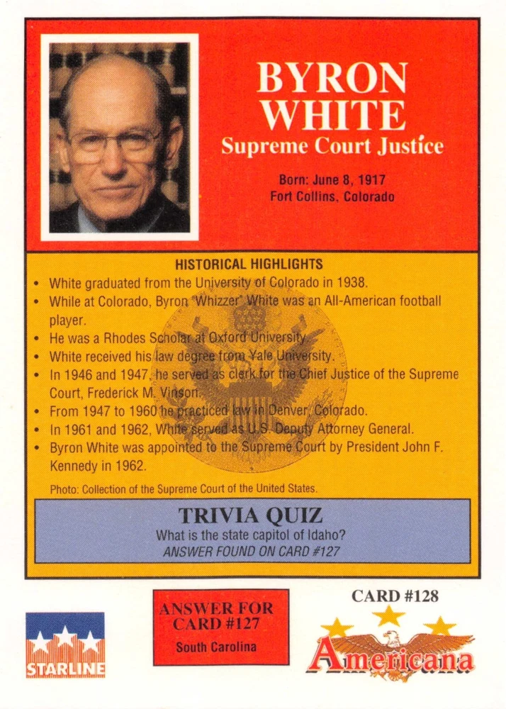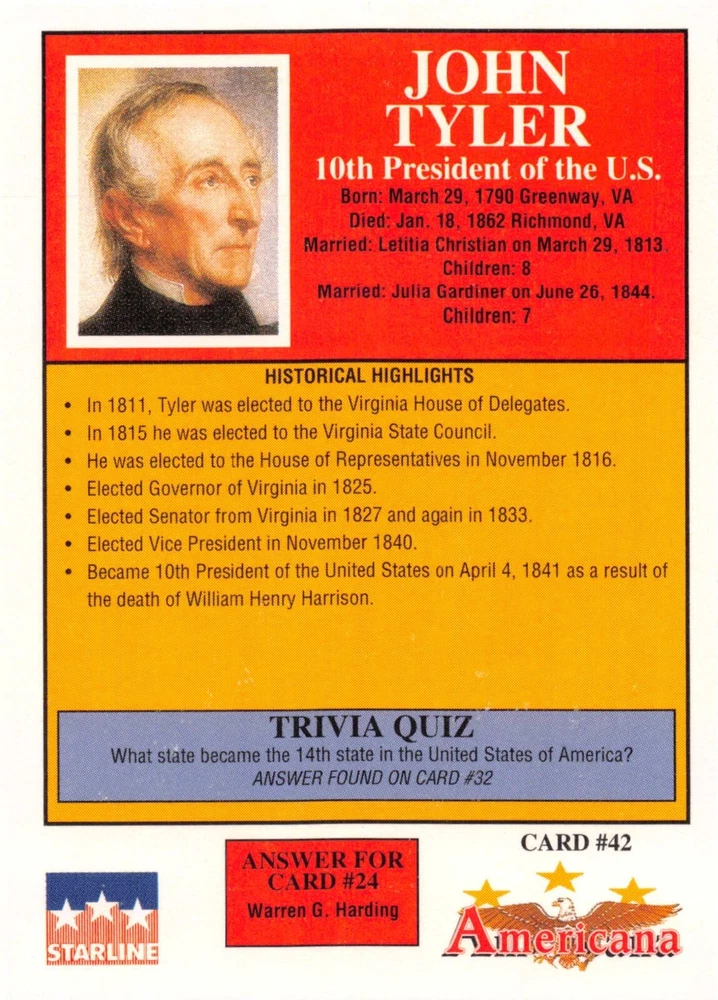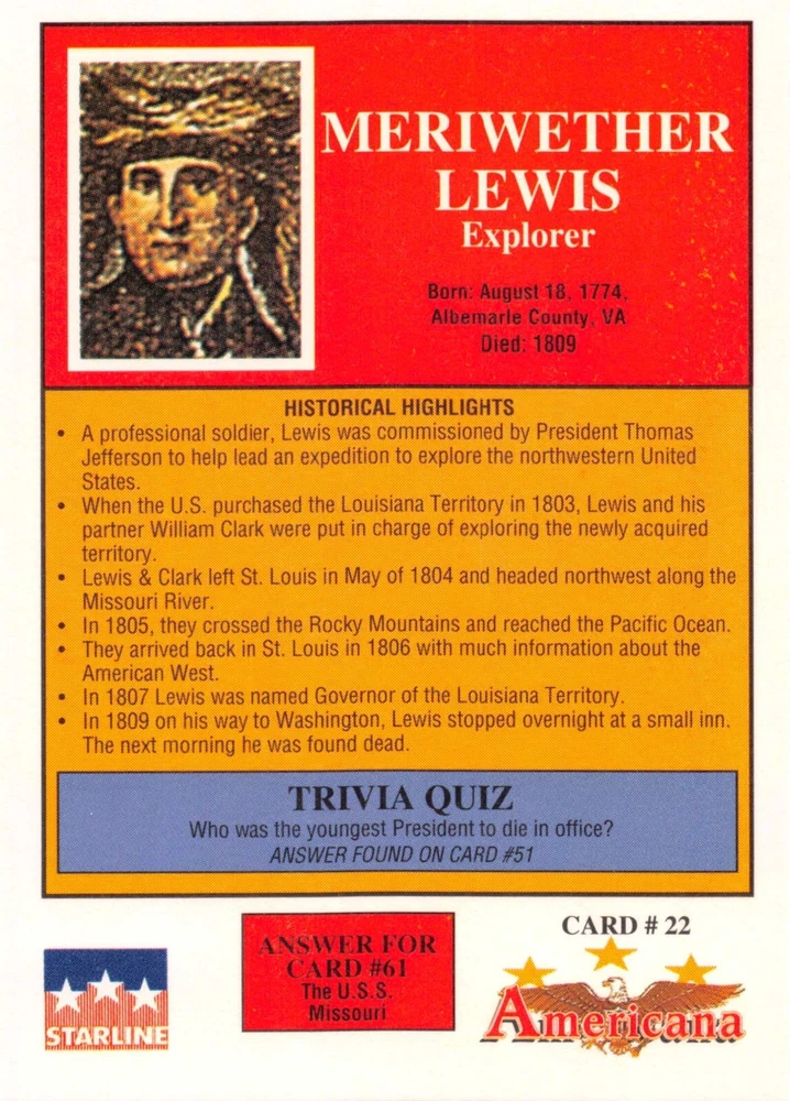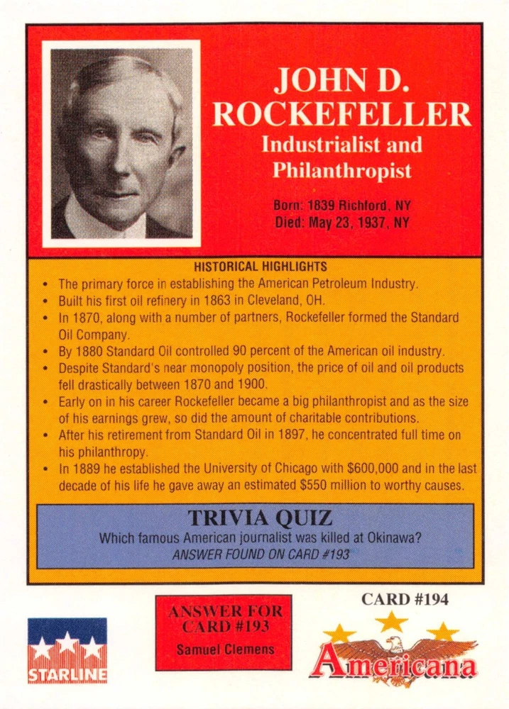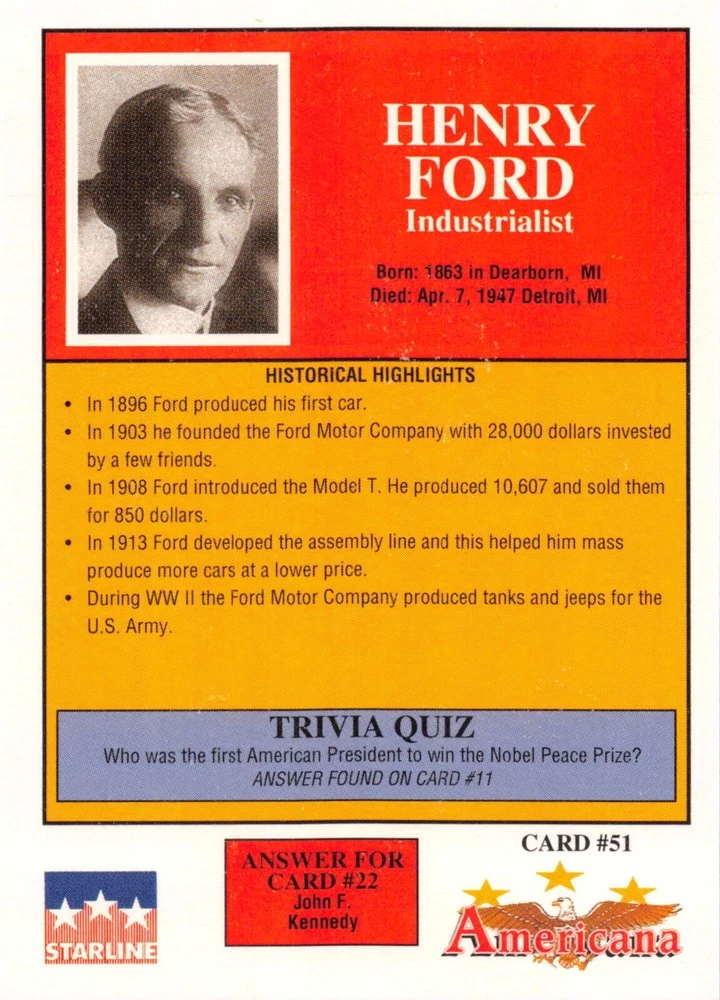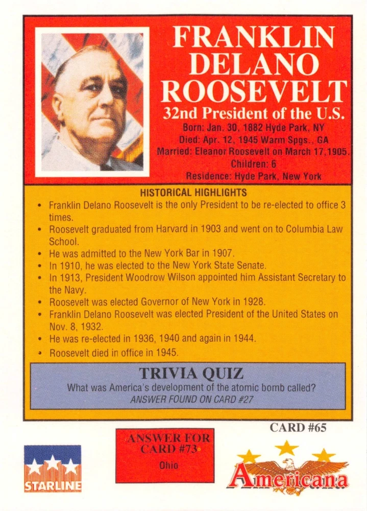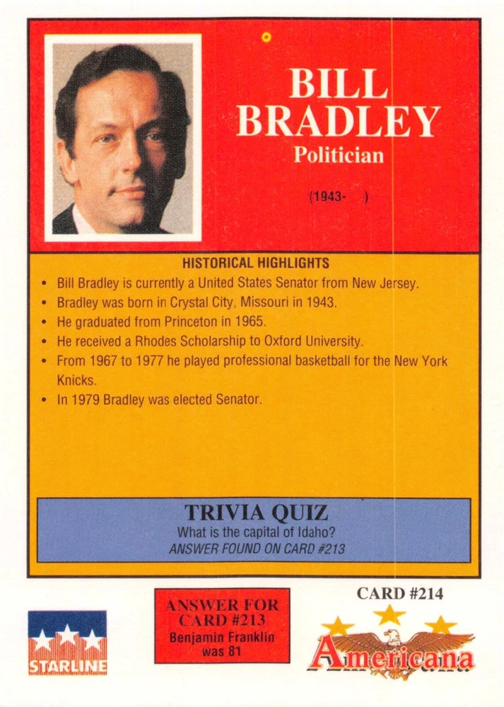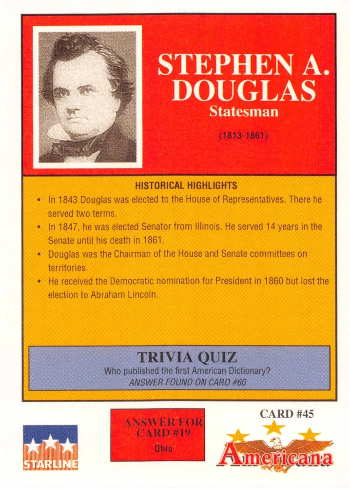 This listing is for your choice of any available 1991 Starline Americana Historic Trading Cards card from the drop-down menu above. Photos show front and backside of each card, be sure to scroll sideways to view front and backside photos! Any questions? Please ask before buying. International "USPS First Class Mail" will not include a tracking number for this item, if you would like a tracking number please choose the "eBay International Standard Shipping" option when you check out. As with all of my "pick-a-card" listings, I will be shipping with "eBay Standard Envelope". The rules of this envelope state that it cannot be too thick, so please expect your order to be packaged as follows: 1 to 6 cards will be slid into a single sleeve, the sleeve will then be slid inside of a semi-rigid Card-Saver. 7 to 12 cards will be slid into a double sleeve, 13 to 18 cards into a triple sleeve, 19 to 24 cards into a quadruple sleeve(up to six cards per sleeve). The double, triple and quadruple sleeve shipping will not have the Card-Saver. If you buy more than 1 card and want it packaged with more than 1 Card-Saver(or 1 sleeve per card), I kindly ask that you contact me before purchasing to be sure that this is possible to have it done with the stated shipping charge, or if additional shipping would be required. If you do not contact me, then you can expect to receive your order packaged as I have explained here. Please do not expect rigid top-loaders to be included, I don't normally keep a lot of them in stock, but if you message me prior to ordering I will be able to see if I have any that can be included with your order - additional shipping may be required. In order to get free combined shipping from this and any of my other "pick-a-card" listings, you must add all of your cards to the cart and check out when you are done shopping. If you do not use the cart you will be overpaying on shipping and I cannot refund you on over-payed shipping. So please use the cart and get your FREE COMBINED SHIPPING!