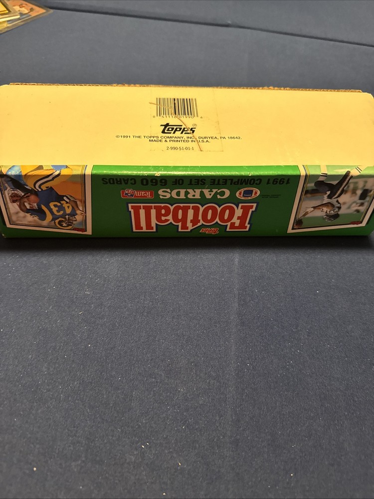The Topps 1991 NFL Football Cards Factory Set features a total of 660 cards made of card stock and plastic material. This set includes players like LaDainian Tomlinson, Emmitt Smith, Barry Sanders, Walter Payton, Drew Brees, Michael Vick, John Elway, and Chad Johnson, representing teams such as the New Orleans Saints, Houston Texans, Chicago Bears, Dallas Cowboys, and Los Angeles Chargers. Each card is part of the National Football League (NFL) and is from the 1991 season, with notable features like being serial numbered, a base set, rookie cards, collectors edition, and a checklist included in the box configuration.