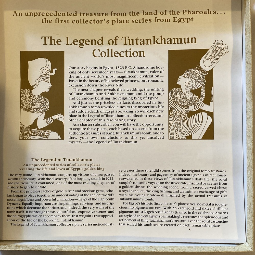 1991 Tutankhamun and Princess Osiris Porcelain Collector Plate