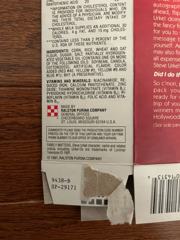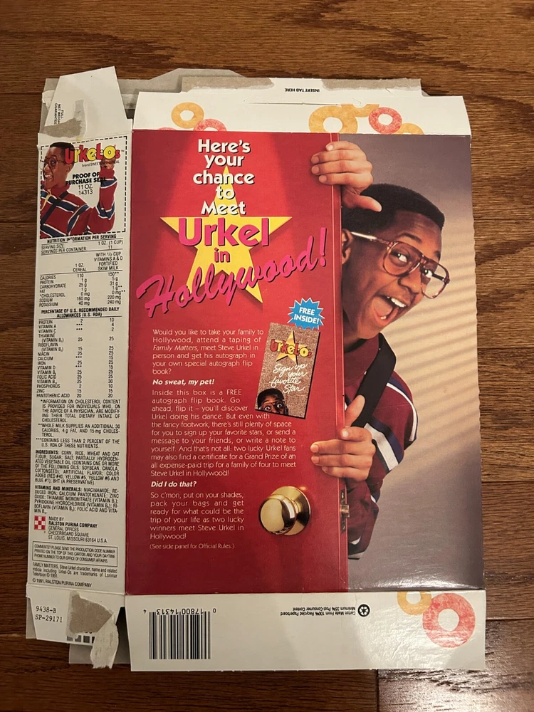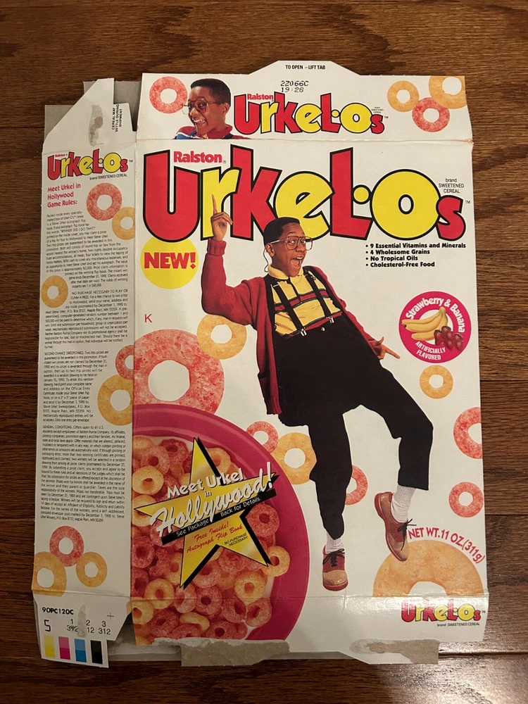Up for sale is a rare and hard-to-find vintage "Urkel-Os" cereal box from Ralston. The cereal box is being sold in "as-is" condition. Please read the "Condition Description" for further details and look at the pictures for closer inspection. It is stored and comes from a smoke-free home. I only ship within the United States. I will not sell and/or ship items that are originally purchased through sekaimon.com, eBay Japan, or via freight forwarders located within the United States. It will ship with both tracking and insurance inside a padded envelope and will have cardboard placed on either side of it for protection. If you have any questions, please don't hesitate to ask. Also, if you would like any additional pictures taken of the cereal box, I will be more than happy to do so. I have an excellent feedback rating, so purchase with confidence. Please check out my other listings for additional vintage cereal boxes.