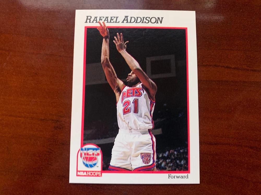 Player/Athlete: Kenny Anderson Manufacturer: NBA Properties Sport: Basketball Series: NBA Hoops Features: Base Set, Rookie brand: NBA Properties Set: 1991-92 NBA Hoops Season: 1991-92 Team: New Jersey Nets League: National Basketball Association (NBA) Card Number: 547